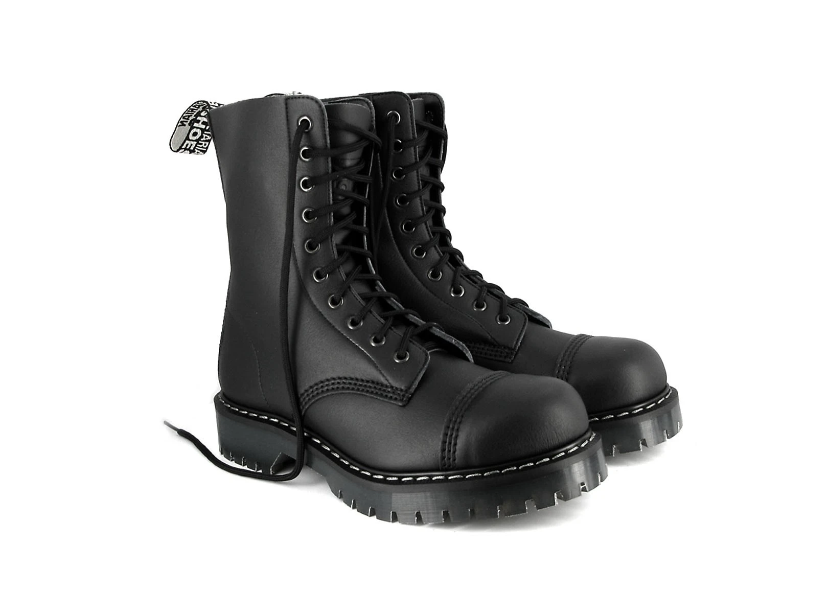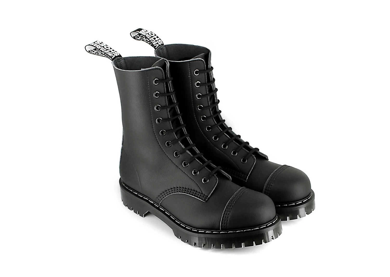 The 10 Eye Boot by VEGETARIAN SHOES is an exceedingly robust lace-up boot with a steel toecap. Having been manufactured over decades, it has become a true classic. Its sturdy sole has a deep tread, good grip, protection and excellent cushioning. The insoles offer additional padding and ensure exceptional comfort. While the 10-eye lacing ensures an excellent fit, the upper material offers breathability and is water resistant.