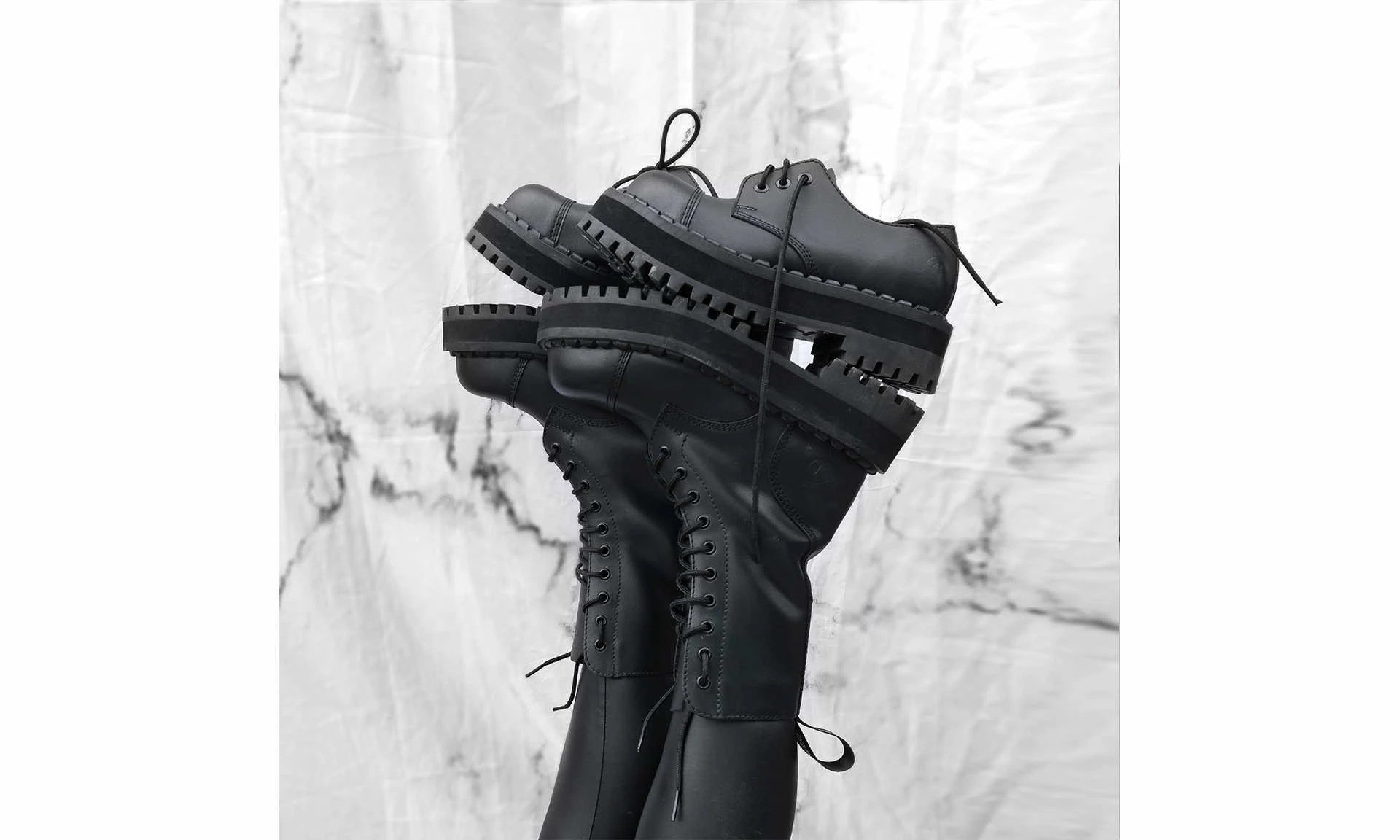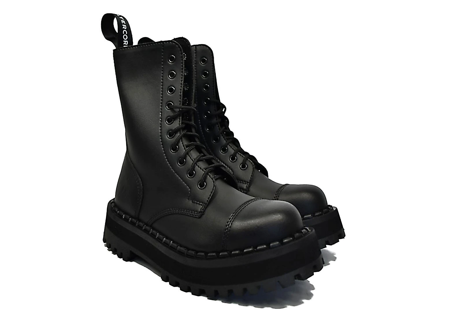 ALTERCORE’s 353 is a robust 10-eye lace-up combat boot made from high-quality synthetic leather. 353 features an extra chunky 4 cm treaded outsole and a steel toe cap. Like all ALTERCORE’s footwear, the 353 is evidently inspired by rock’n’roll and rebellion, and clearly a boot not to be messed with!