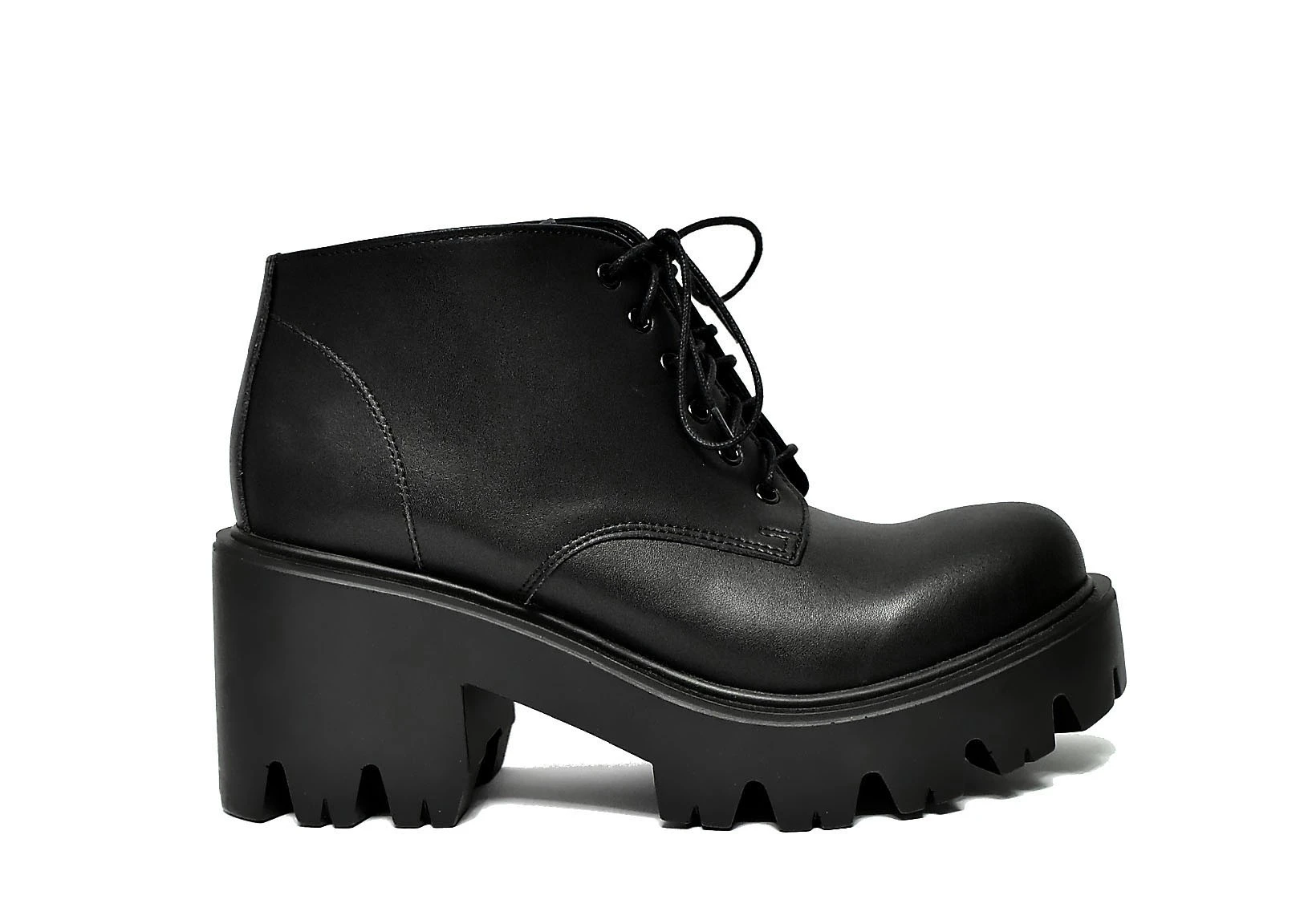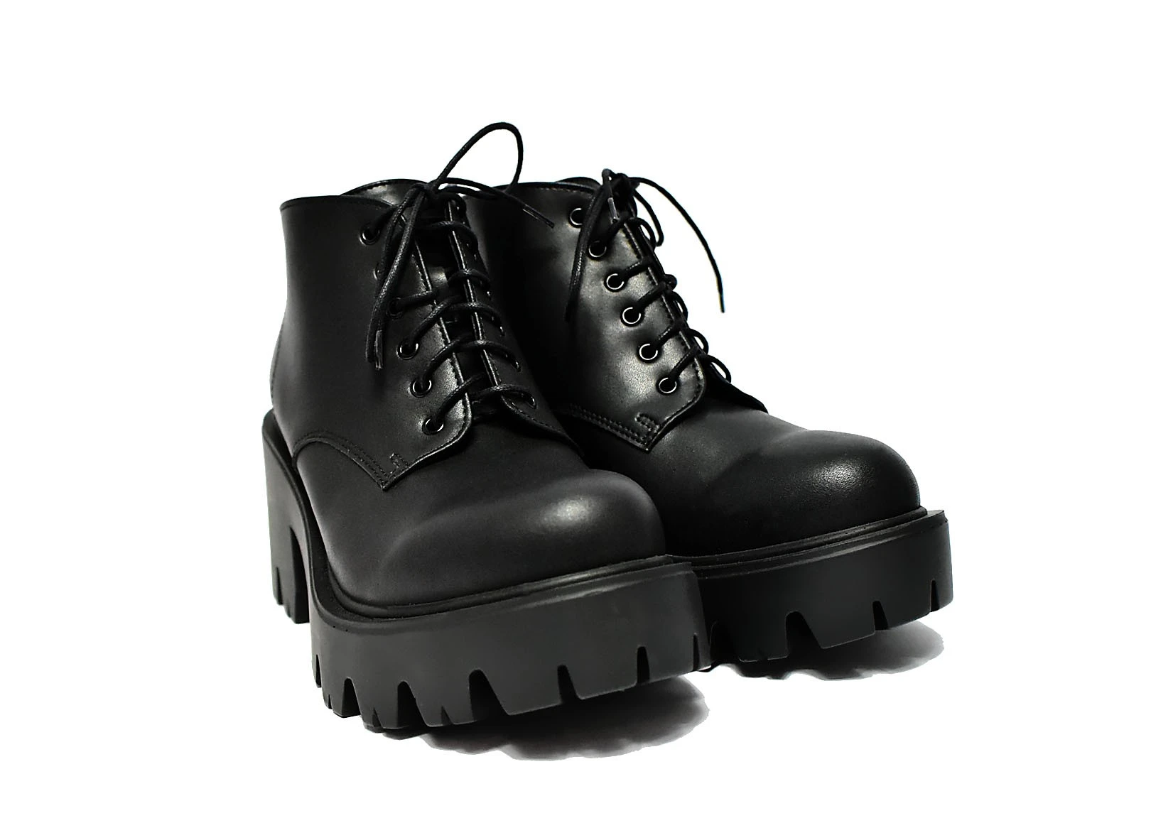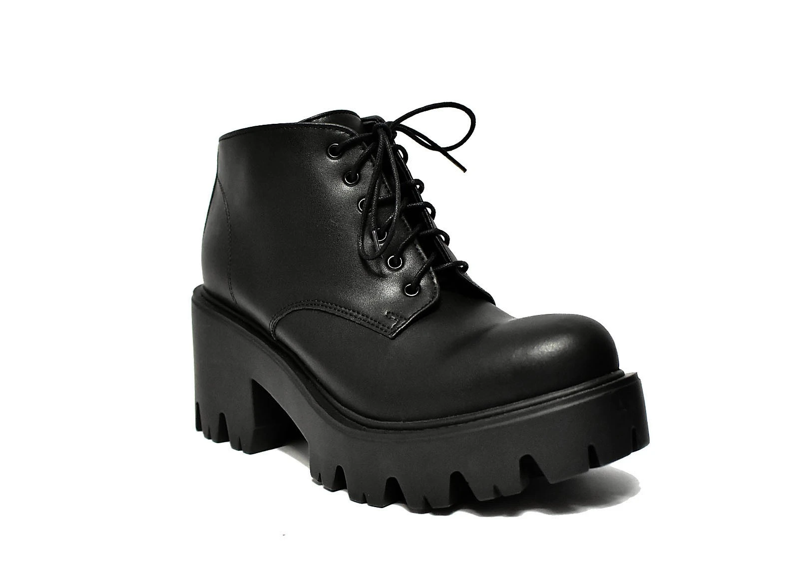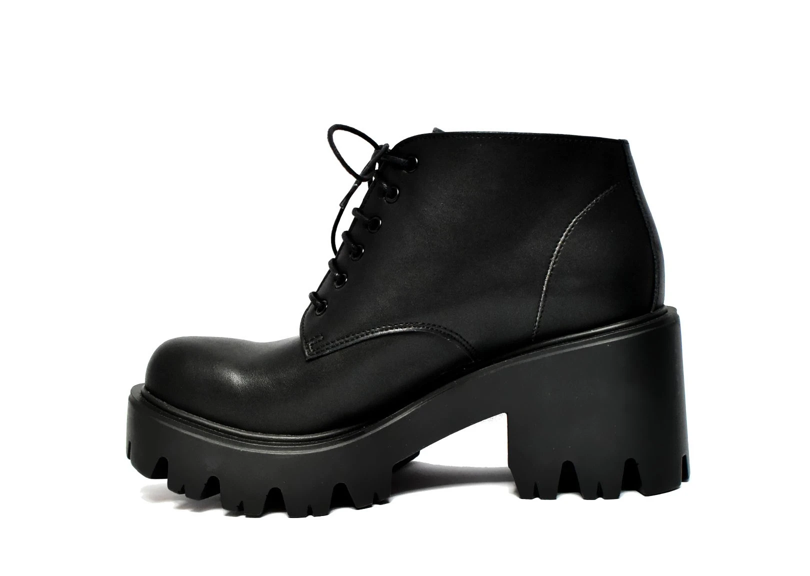 Nexi by ALTERCORE is a stylish platform ankle boot with a 6-eye lacing. It is made from high-quality faux leather with a thick mid-heeled rubber outsole. Nexi is clearly inspired by classic English work boots and punk aesthetics, but has a cool feminine touch with the delicate lacing and the platform sole.