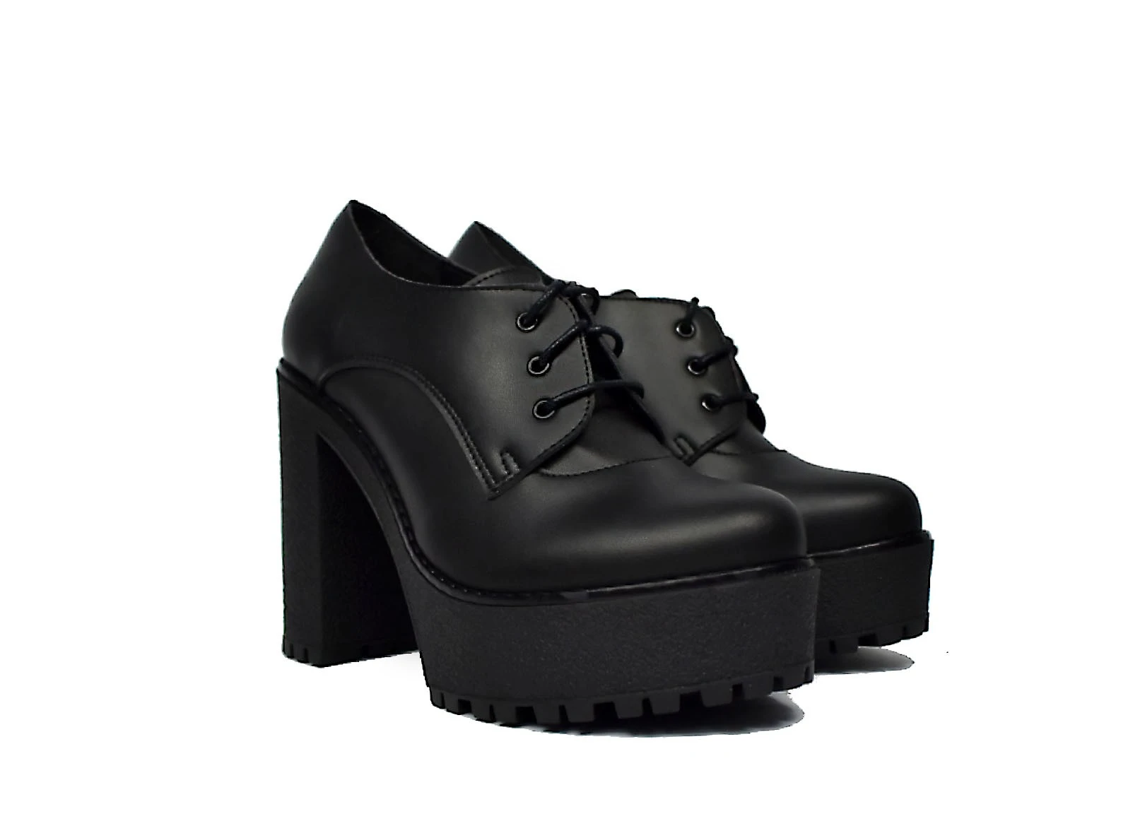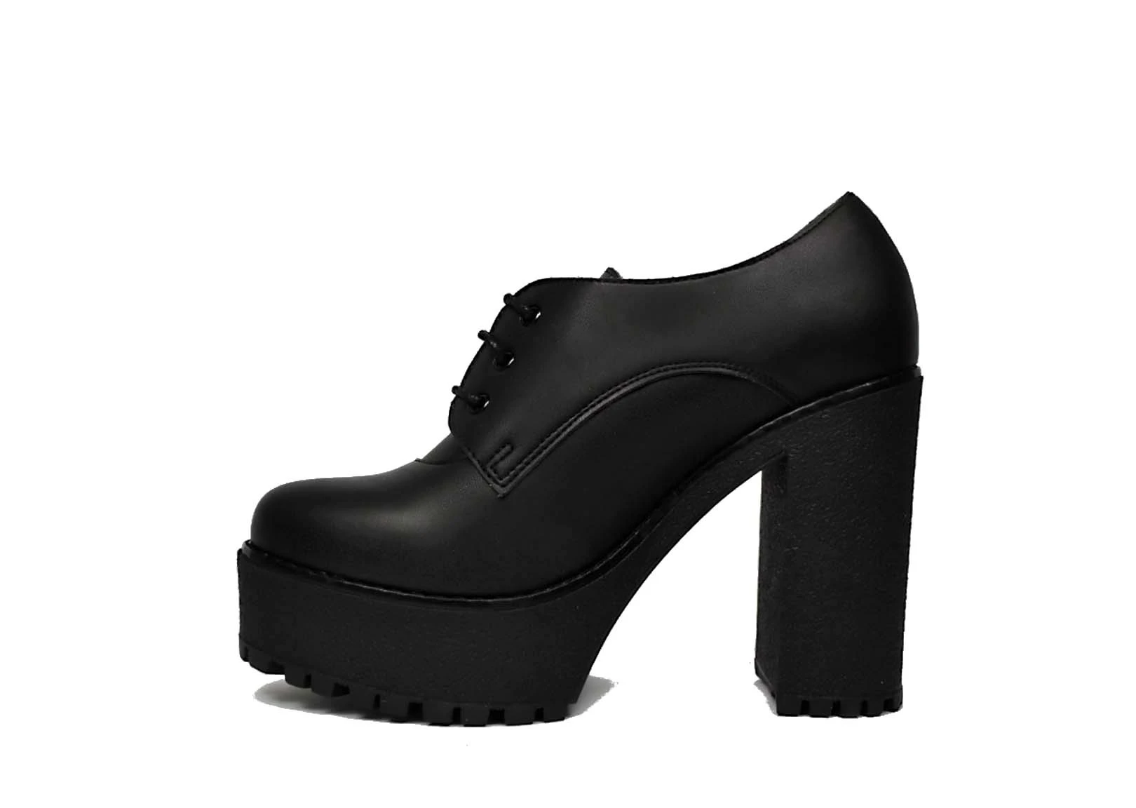 ALTERCOREs Trixie is a high heel lace-up shoe. It is made of synthetic leather and has a thick platform sole with a 7.5 cm high heel. If you are looking for a simple yet expressive shoe with a high heel that makes a real statement, this is the right shoe for you.