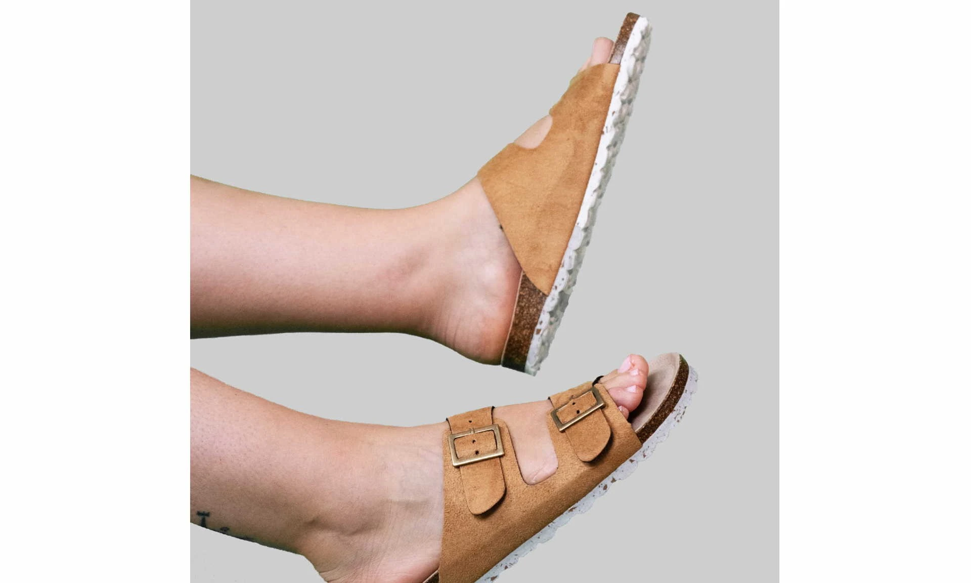 With the Arena Slip-On Sandal by the young brand LAÜD from Spain you make a particularly sustainable choice – because the faux suede upper material is made from recycled plastic bottles. The anatomically shaped footbed is especially comfortable and antibacterial. Production takes place in a small family-run factory in Elche, Spain – where the materials used are also made. Thus, the manufacturing distance of this 100% vegan sandal is 0 km. 😉 Once you slip into this stylish sandal, you won’t want to take it off!