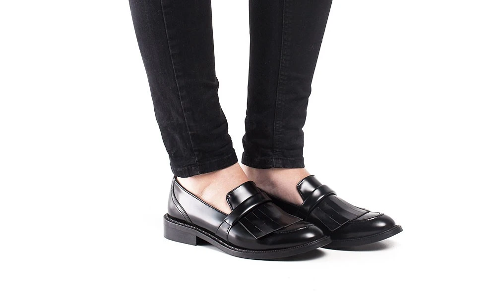 Brina by NAE is a classic women’s fringe loafer made from faux leather. It has a breathable, hypoallergenic microfiber lining and robust sole with a slightly raised heel. Brina offers timeless, ethical elegance for business outfits and every day wear.