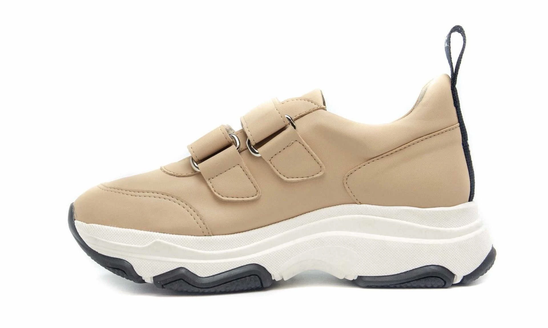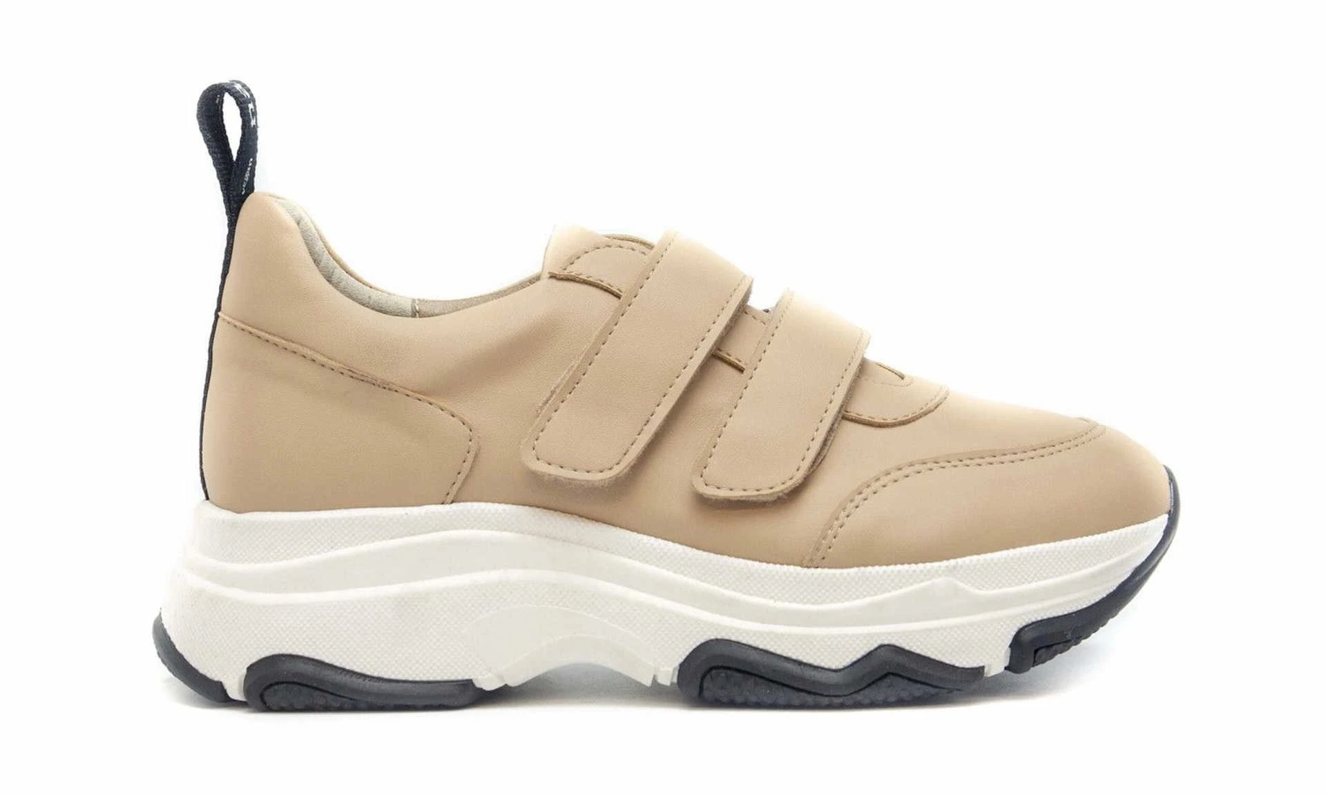 The Coline by NAE is a eco-friendly, plateau sneaker with Velcro fasteners. This chunky low-top sneaker is a fashionable must have addition to your closet.