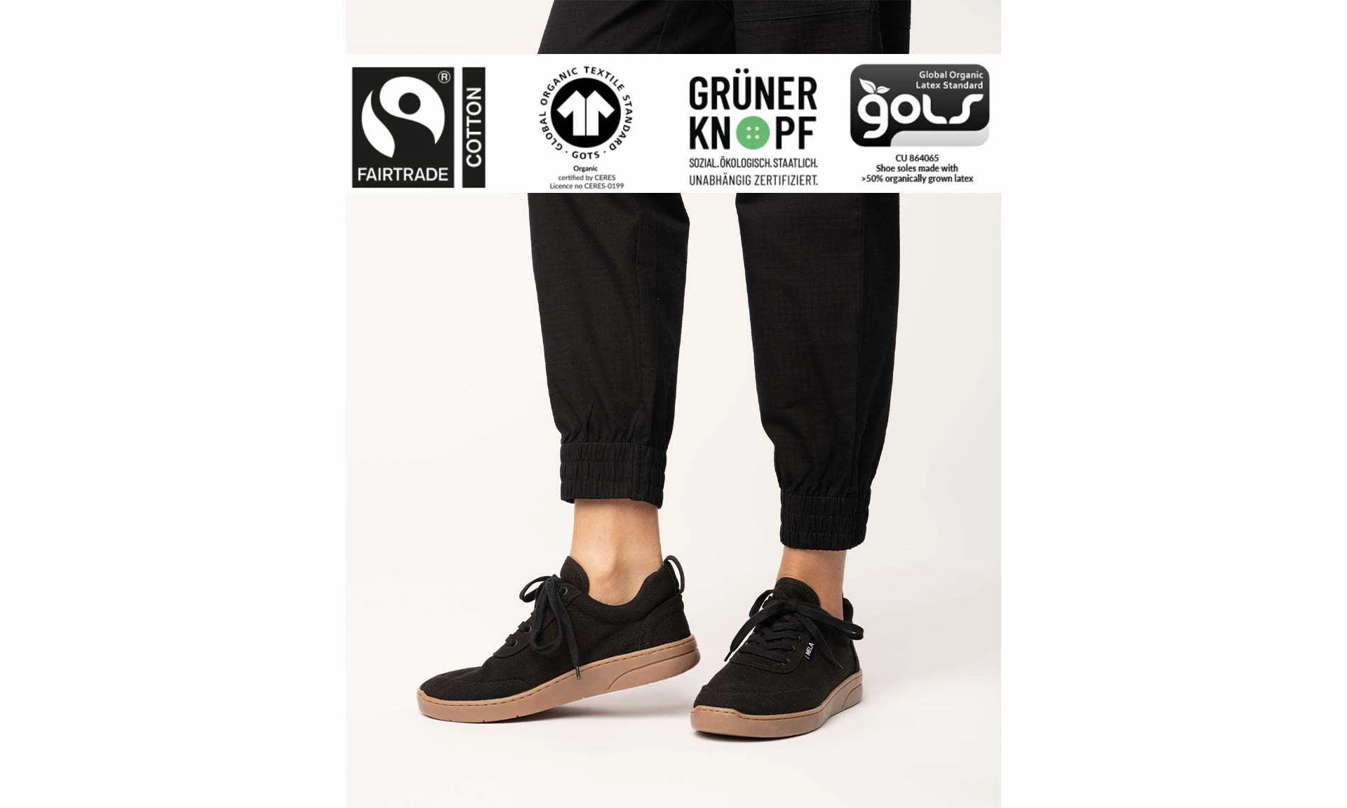 YALA black / gum by Mela is a vegan unisex sneaker. The label’s new design is triple certified – with the Fairtrade Cotton seal, the GOTS and GOLS seal. All components of the shoe are therefore made of particularly sustainable materials from ethical sources: the upper material and laces are made of organic cotton and the soles are made of natural rubber (50% organic). The sustainable sneaker is produced fairly in Sri Lanka. This is also where the natural rubber comes from – in partnership with the GIZ (German Society for International Cooperation), MELA supports the rubber plantations in switching to organic farming and maintaining high social standards. The project also enables the rubber tappers to plant their own organic vegetable gardens.