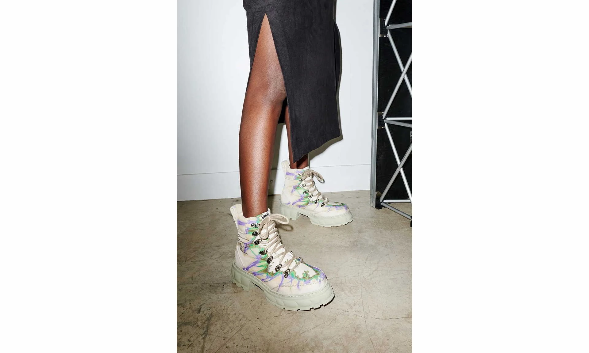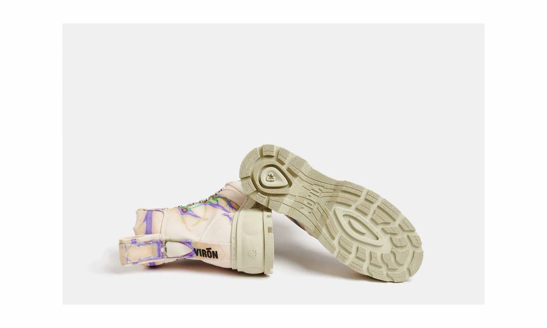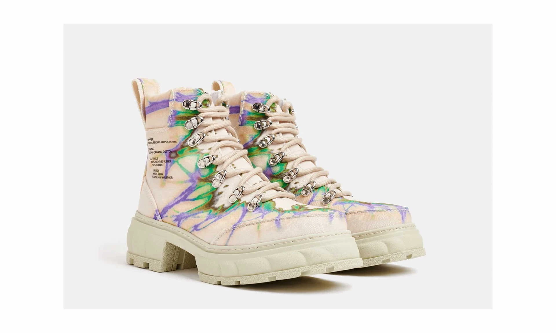 The Disruptor Flair is a vegan combat boot from the French footwear brand Viron. The colour gradient makes this shoe an absolute eye-catcher. Whether in the urban jungle or hiking through forests, meadows or mountains – with this ultra-stylish hiking boot you will be super comfortable and also leave a smaller eco-footprint thanks to the recycled materials! Characteristic for Viron is the print of the boot’s material composition on the outside – for maximum transparency.