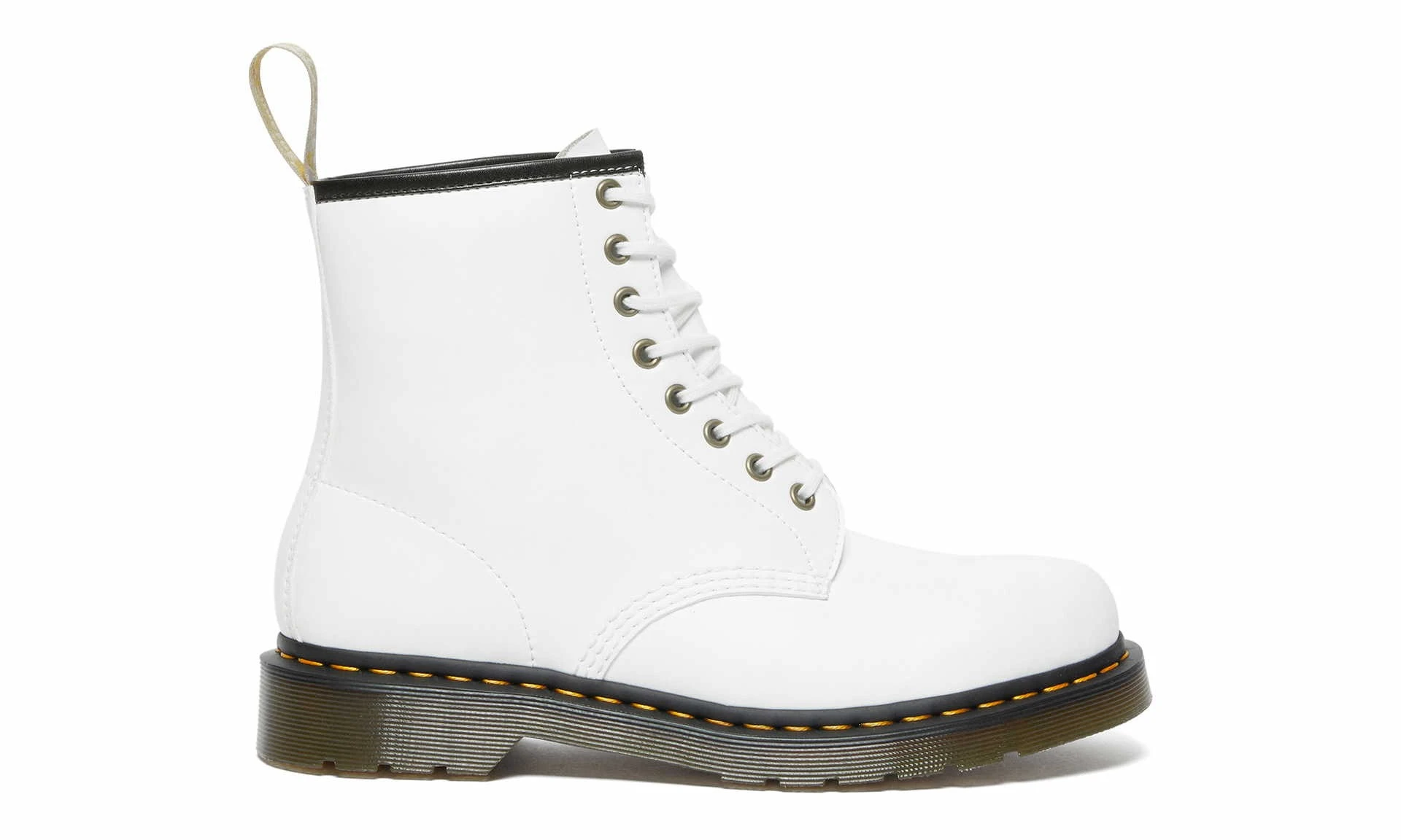 The 1460 8-Eye Boot Optical White Kemble by DR. MARTENS is a lace-up boot with the brand’s signature details, such as the heel loop and yellow stitching. The upper and the sole are not only glued, but are also stitched together. The characteristic air-cushioned sole from DR. MARTENS offers exceptional comfort and is resistant against oil, grease and acid.