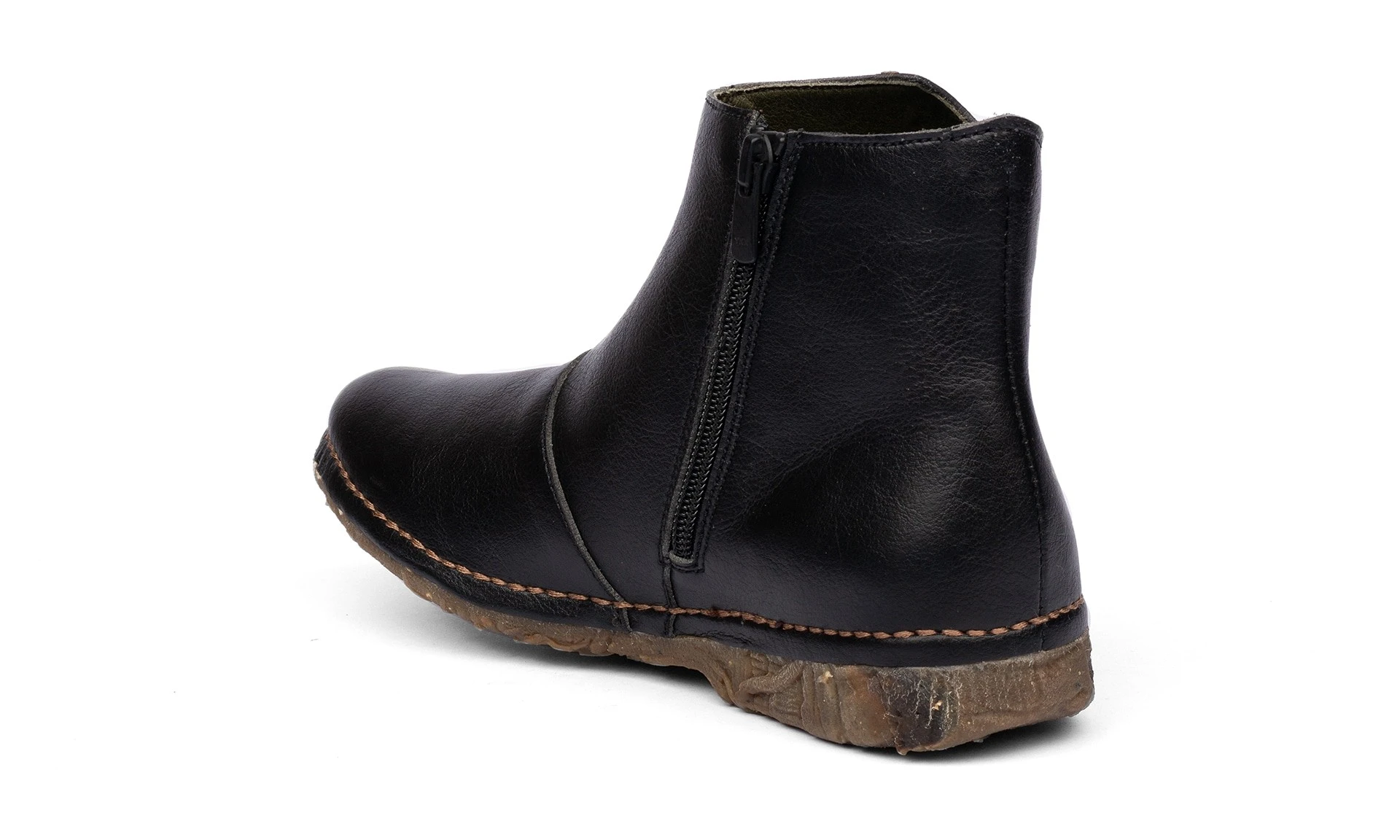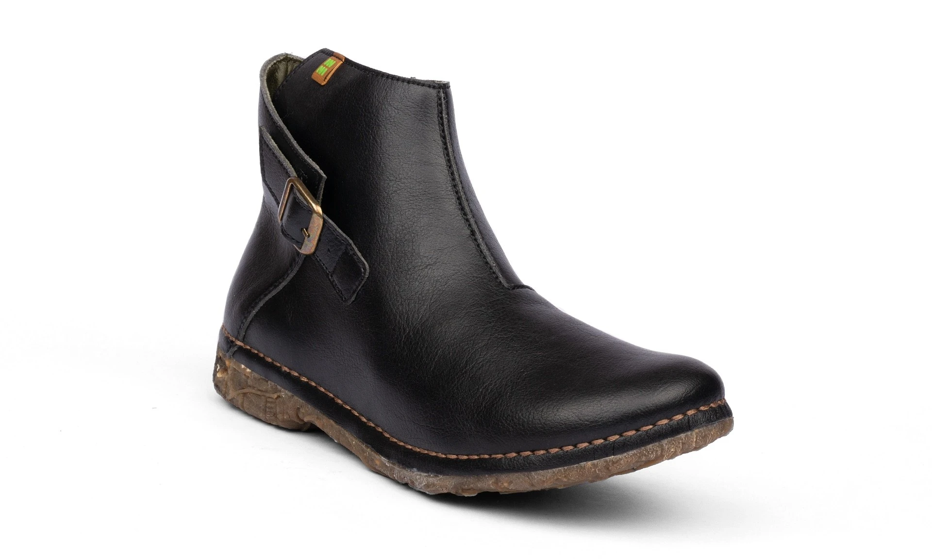 The Angkor N5460T by EL NATURALISTA is a vegan biker boot in the distinguished style of the brand that creates designs inspired by forms and shapes of nature. The eye-catching outsole made from recycled rubber is based on the temple Angkor Wat in Cambodia. The boots upper is made from a smooth, high-quality faux leather with a side-zip opening.