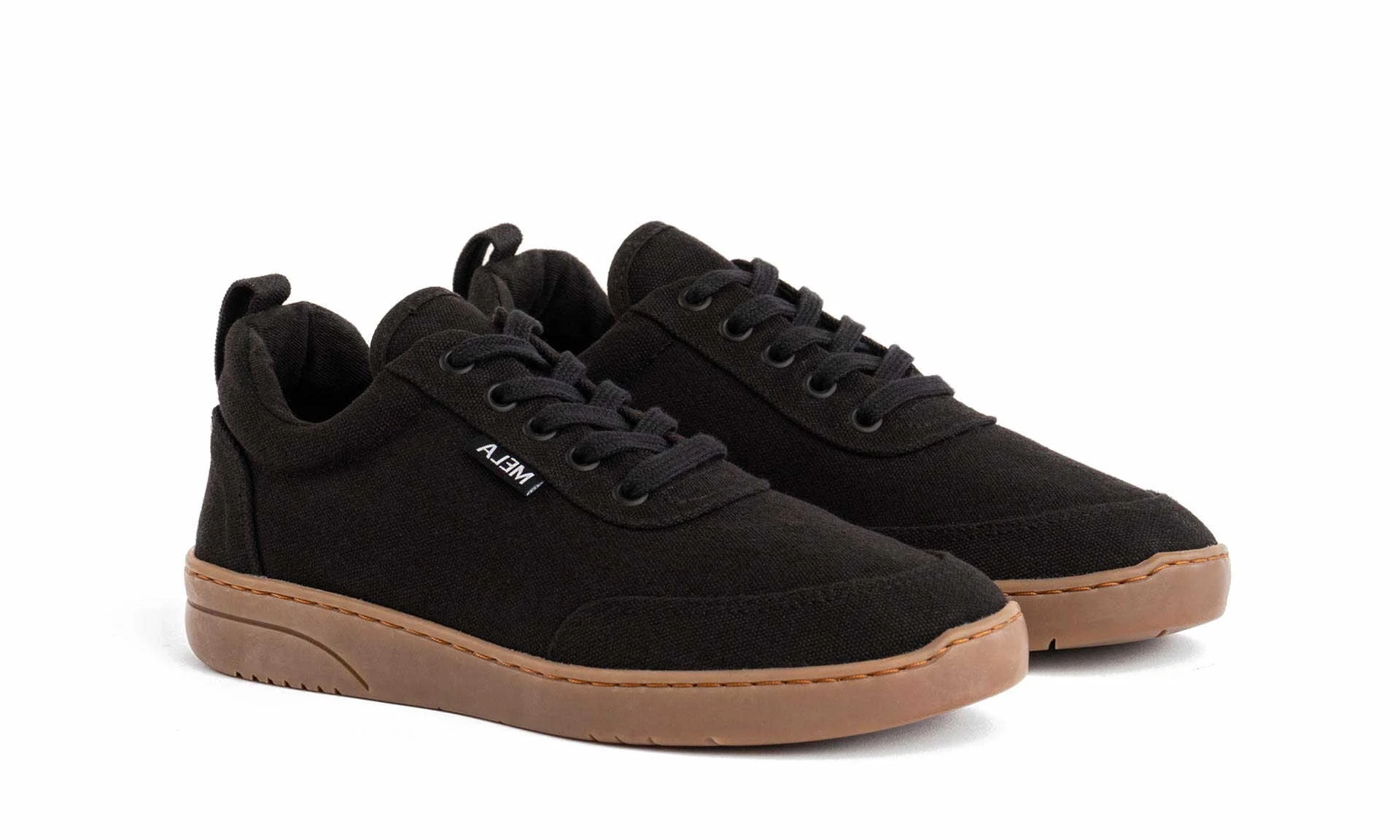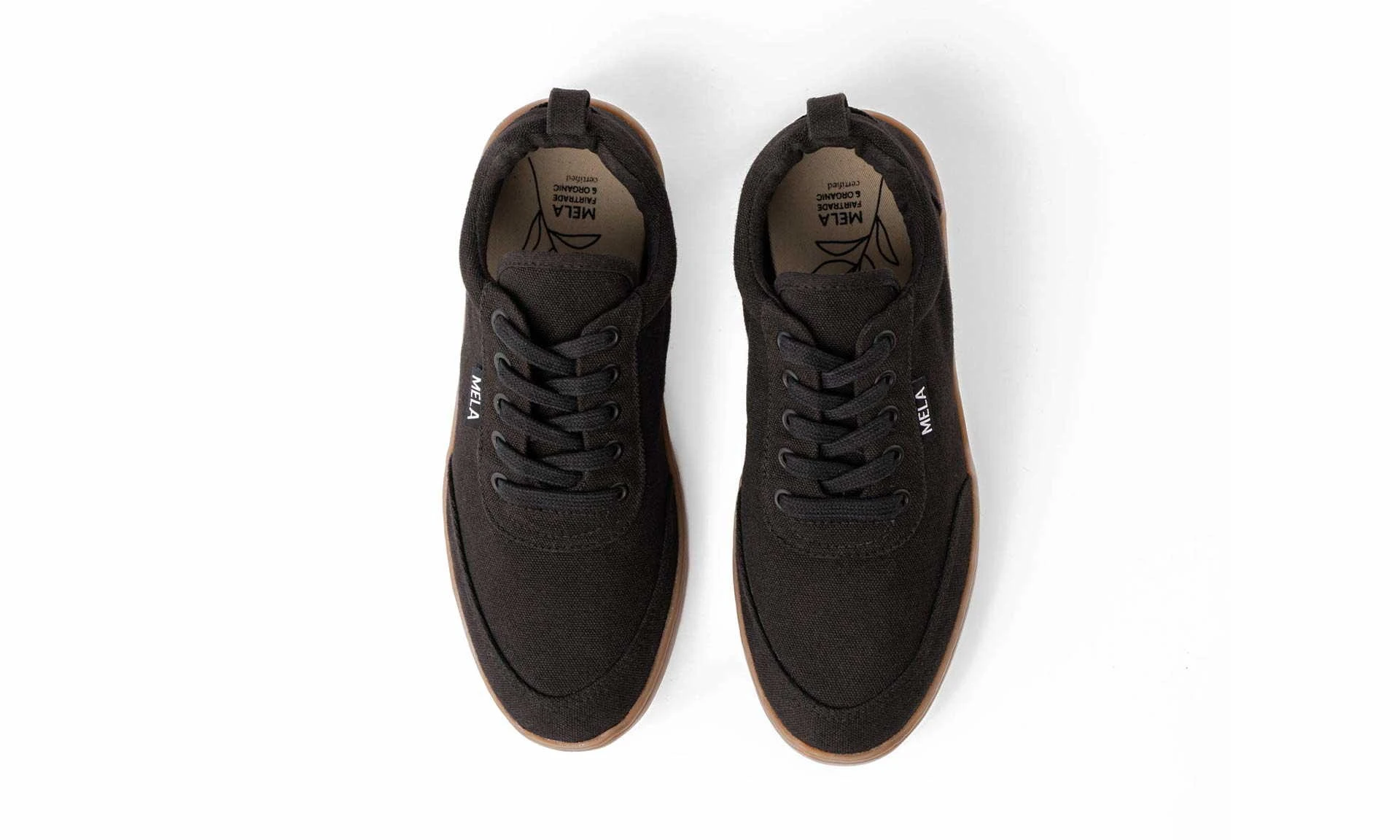 YALA black / gum by Mela is a vegan sneaker for men. The label’s new design is triple certified – with the Fairtrade Cotton seal, the GOTS and GOLS seal. All components of the shoe are therefore made of particularly sustainable materials from ethical sources: the upper material and laces are made of organic cotton and the soles are made of natural rubber with at least 50% organic content. The sustainable sneaker is produced fairly in Sri Lanka. This is also where the natural rubber comes from – in partnership with the GIZ (German Society for International Cooperation), MELA supports the rubber plantations in switching to organic farming and maintaining high social standards. The project also enables the rubber tappers to plant their own organic vegetable gardens.