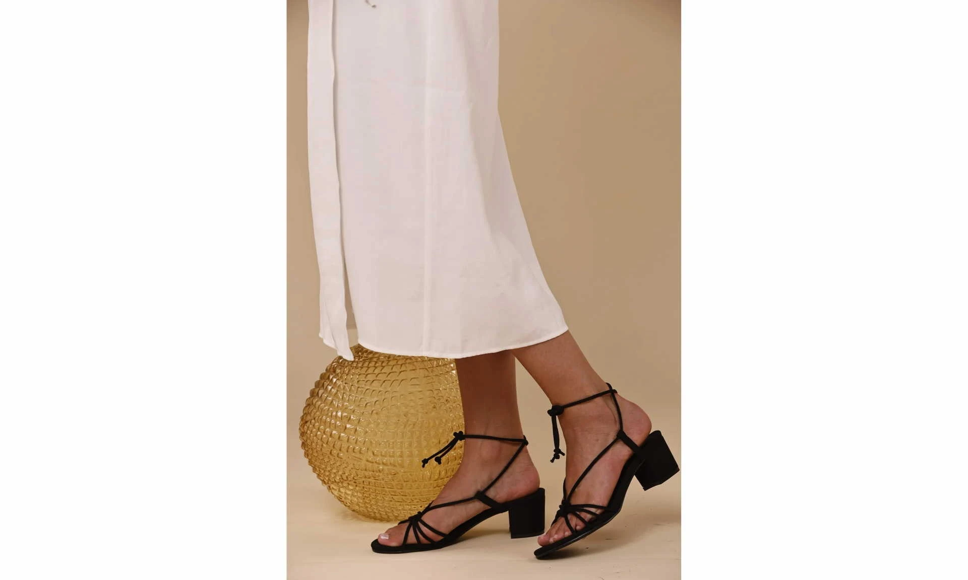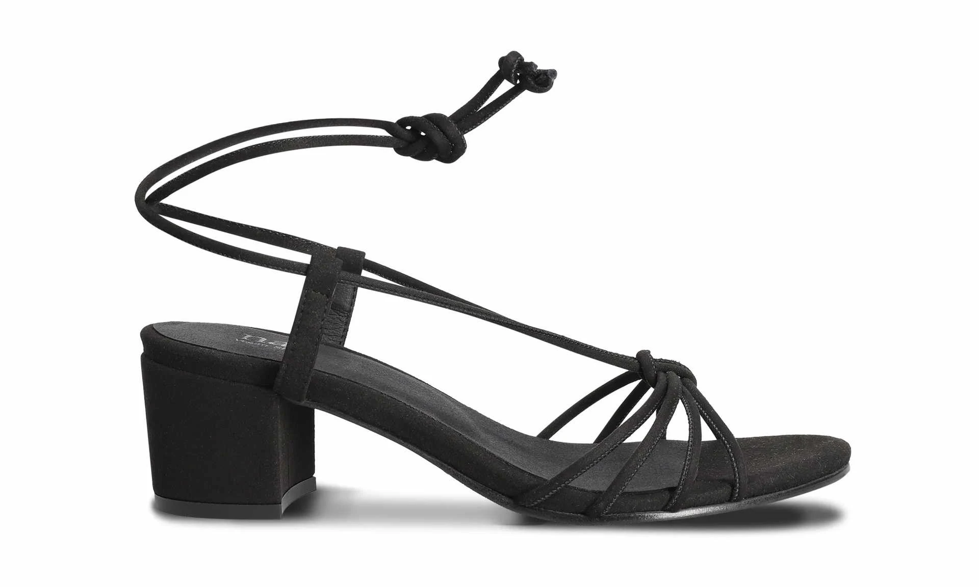 Holly Black is a black elegant strappy sandal for lacing made of vegan suede leather. The materials chosen are antibacterial, hypoallergenic and resource-friendly. This vegan sandal is an absolute eye-catcher, whether with jeans or a breezy summer outfit!