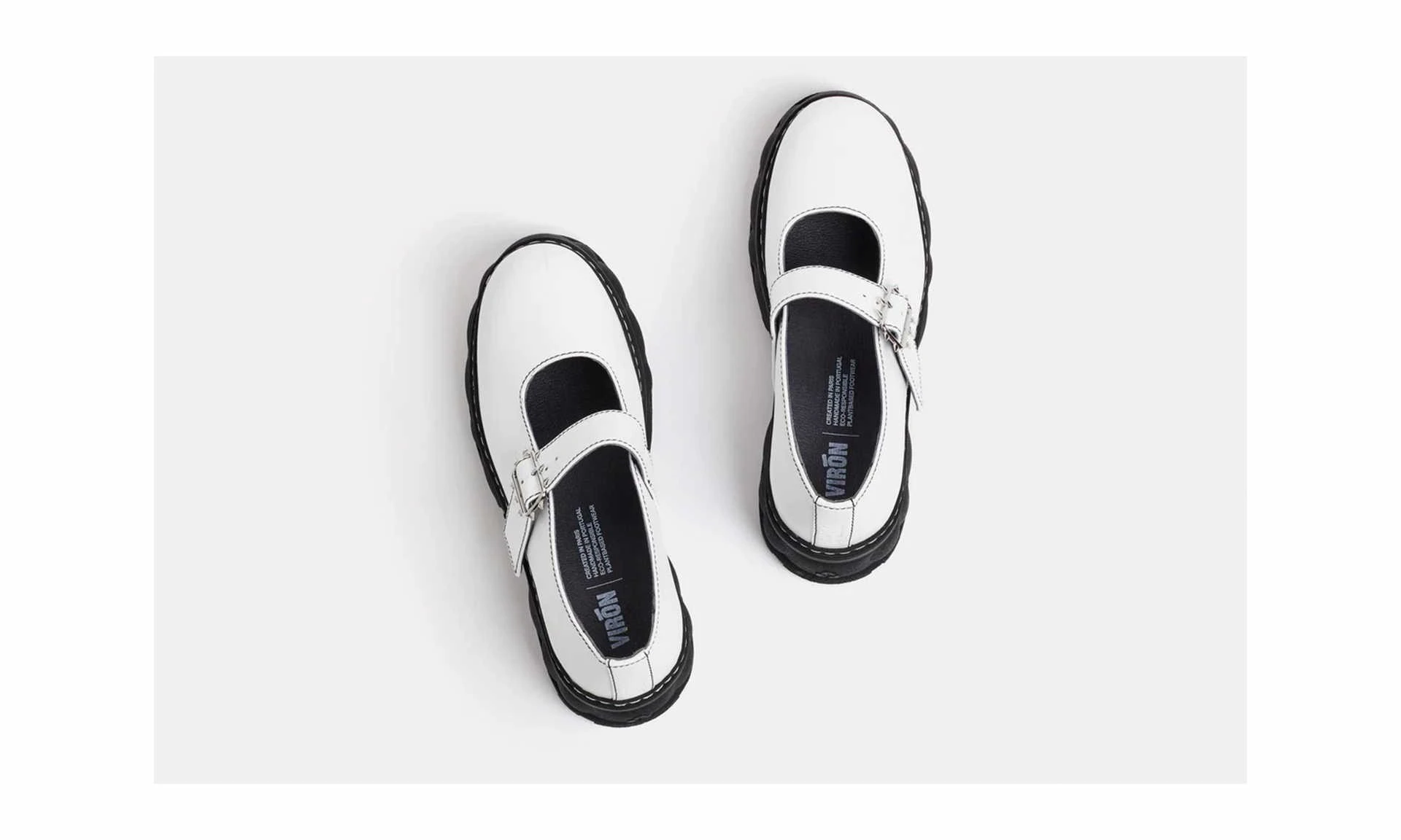 The Impulse Contrast White is a fashionable vegan Mary Jane made of apple leather by Virón. The thorn buckle and chunky soles give the classic model a cool twist. The shoes are comfortable and a more sustainable alternative thanks to the high percentage of recycled materials. If you are missing white Mary Janes in your slow-fashion wardrobe, this high-quality model is just right for you!