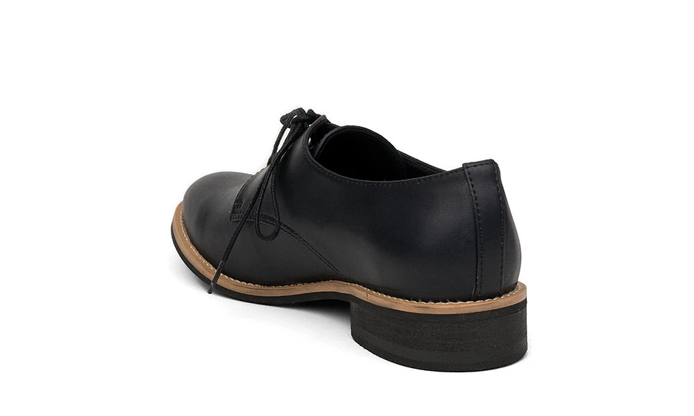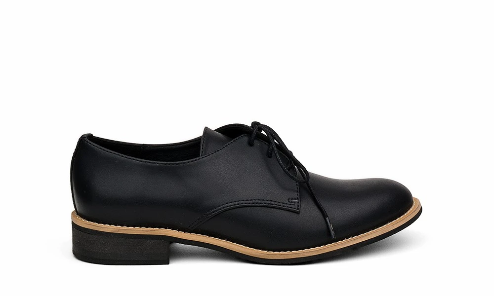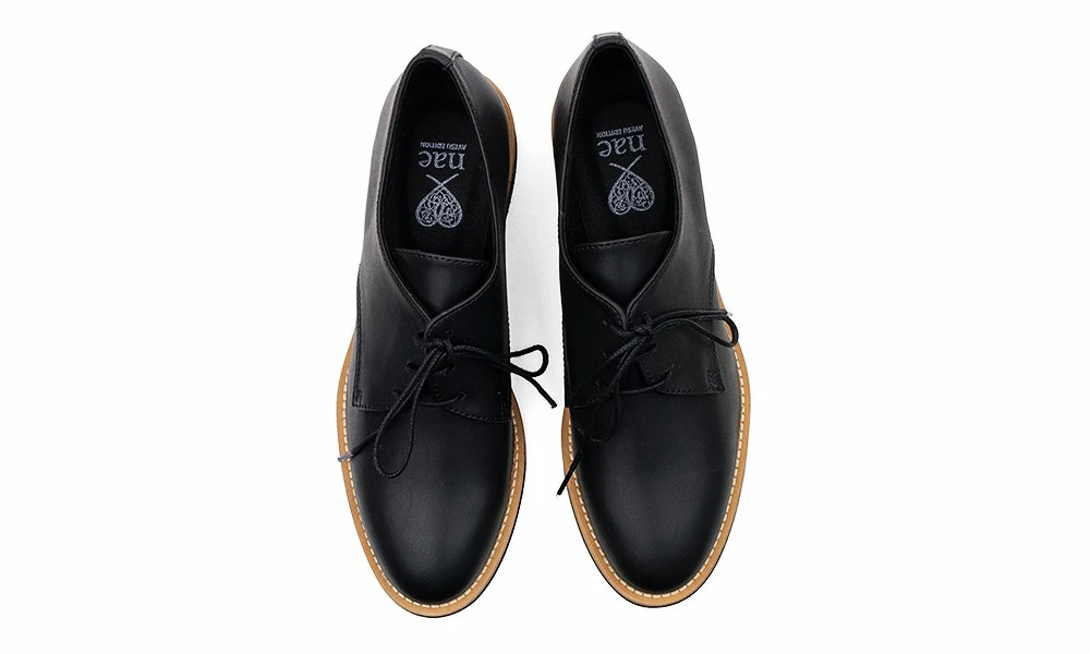 The exclusive AVESU Edition of the Jessica by NAE is a stylish women’s Derby or Gibson with a timeless look thanks to its classic black color. The shoes are made from high-quality, Oeko-Tex certified faux leather and have a light inner lining made from breathable, hypoallergenic microfiber. The soles have two colors and slightly raised heels as well as a pleasantly soft footbed. Like all Derbies, the Justin is primarily a leisure shoe. Thanks to its modest black color, it is also equally suited for business or formal occasions. Those looking for a women’s shoe whose look is just as modest and classic as it is versatile are in just the right place.