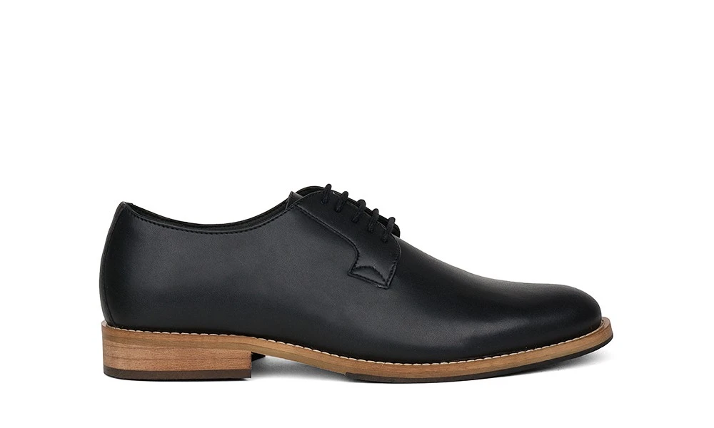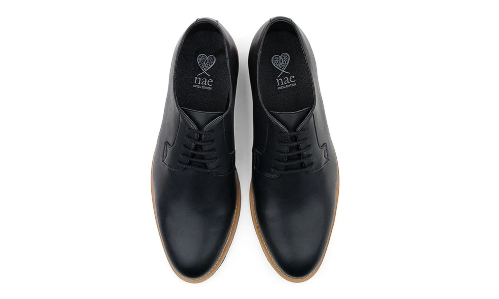 The exclusive AVESU Edition of the Justin by NAE is a stylish men’s Derby or Gibson with a timeless look thanks to its classic black color. The shoes are made from high-quality, Oeko-Tex certified faux leather and have a light inner lining made from breathable, hypoallergenic microfiber. The soles have two colors and slightly raised heels as well as a pleasantly soft footbed. Like all Derbies, the Justin is primarily a leisure shoe. Thanks to its modest black color, it is also equally suited for business or formal occasions. Those looking for a shoe whose look is just as modest and classic as it is versatile are in just the right place.