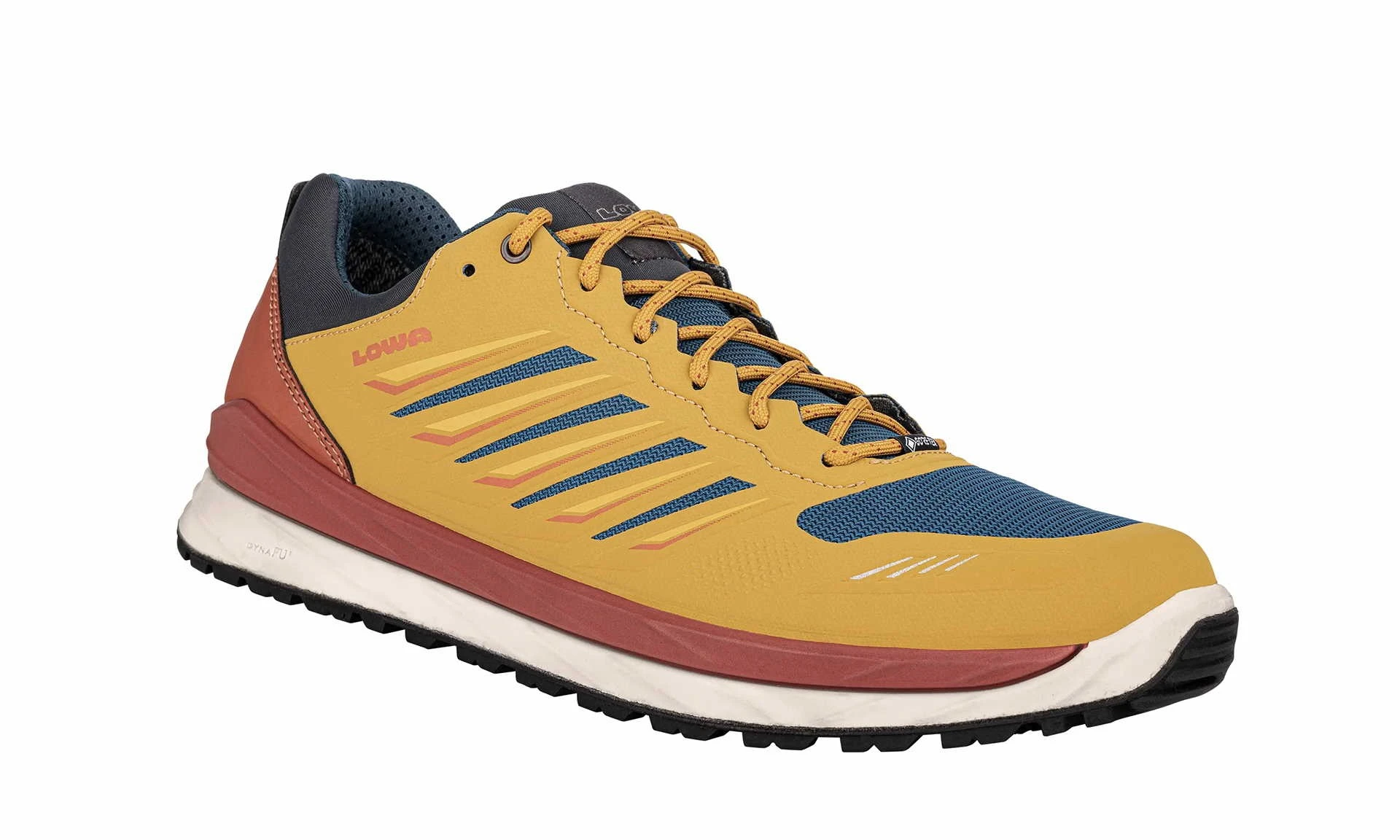 The Axos GTX Lo by LOWA is the new and even lighter version of the lightweight Innox GTX Lo. The shoe EVO is noticeably lighter, yet – as you can expect with LOWA footwear – extremely durable and is suitable for various outdoor activities as well as everyday wear. Thanks to the modern, synthetic upper material and the GORE-TEX® lining, the shoe is also breathable and completely waterproof. The innovative “Eduro Evo” sole by LOWA is particularly light and robust.