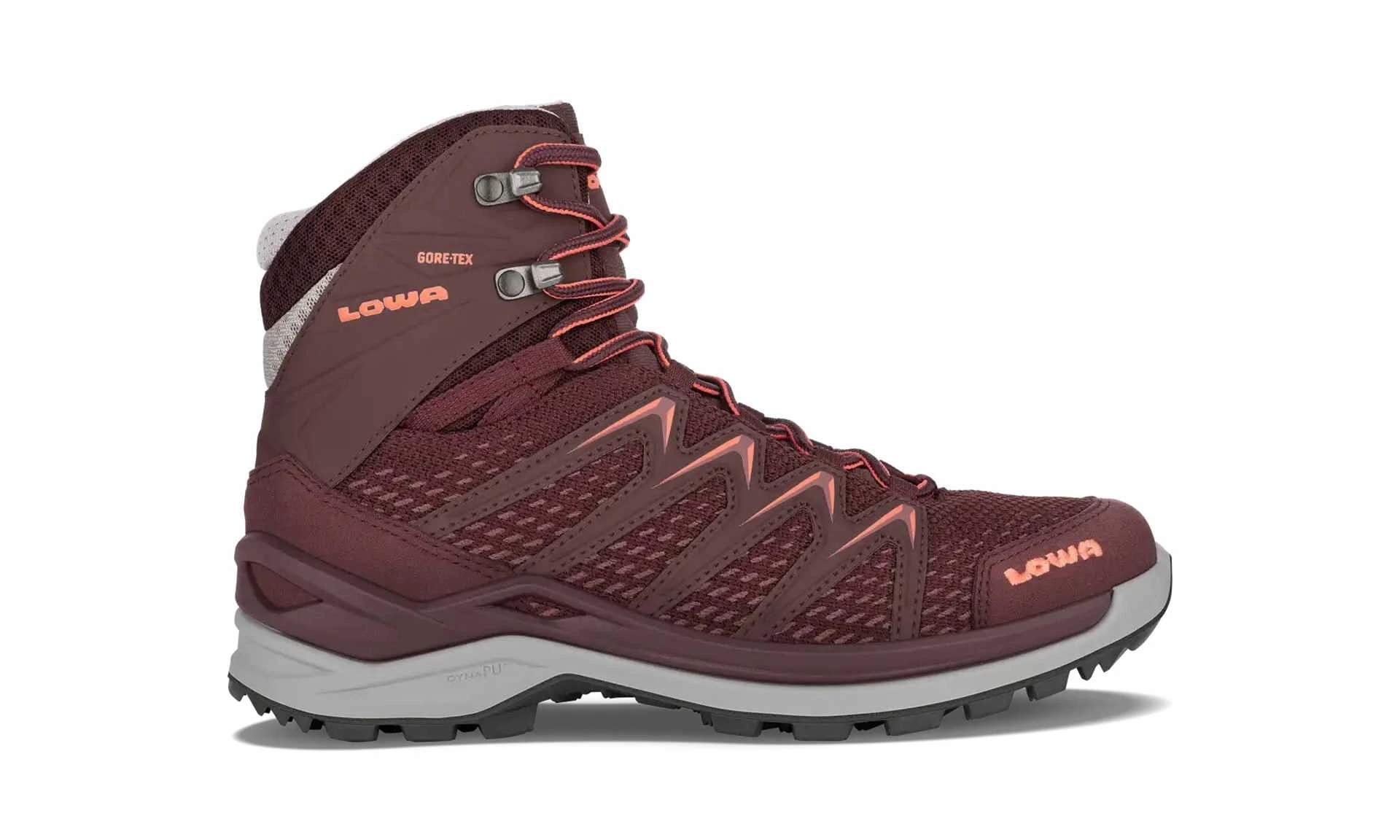The Innox Pro GTX Mid by LOWA is a light mid cut outdoor shoe with the highest functionality. It is made to be suitable for various outdoor activities in any weather conditions. The shaft is made from a high-grade synthetic material to reduce weight. The GORE-TEX® lining is breathable, yet water repellent even in snow and mud. The quick-lacing system with additional hooks provides a perfect fit and stability, together with the LOWA Monowrap® frame that was specially created for maximum stability in the most difficult terrains. A DynaPU® mid-sole guarantees optimal cushioning and comfort. Looking back on decades of expertise in the making of outdoor shoes, LOWA offers excellent quality and craftsmanship, making the Innox Pro GTX Mid a versatile hiking and outdoor boot that hardly leaves anything to be desired.