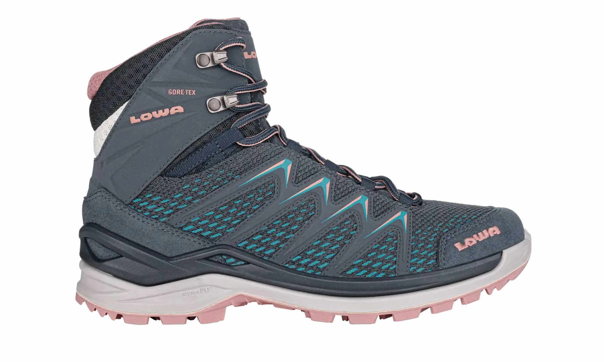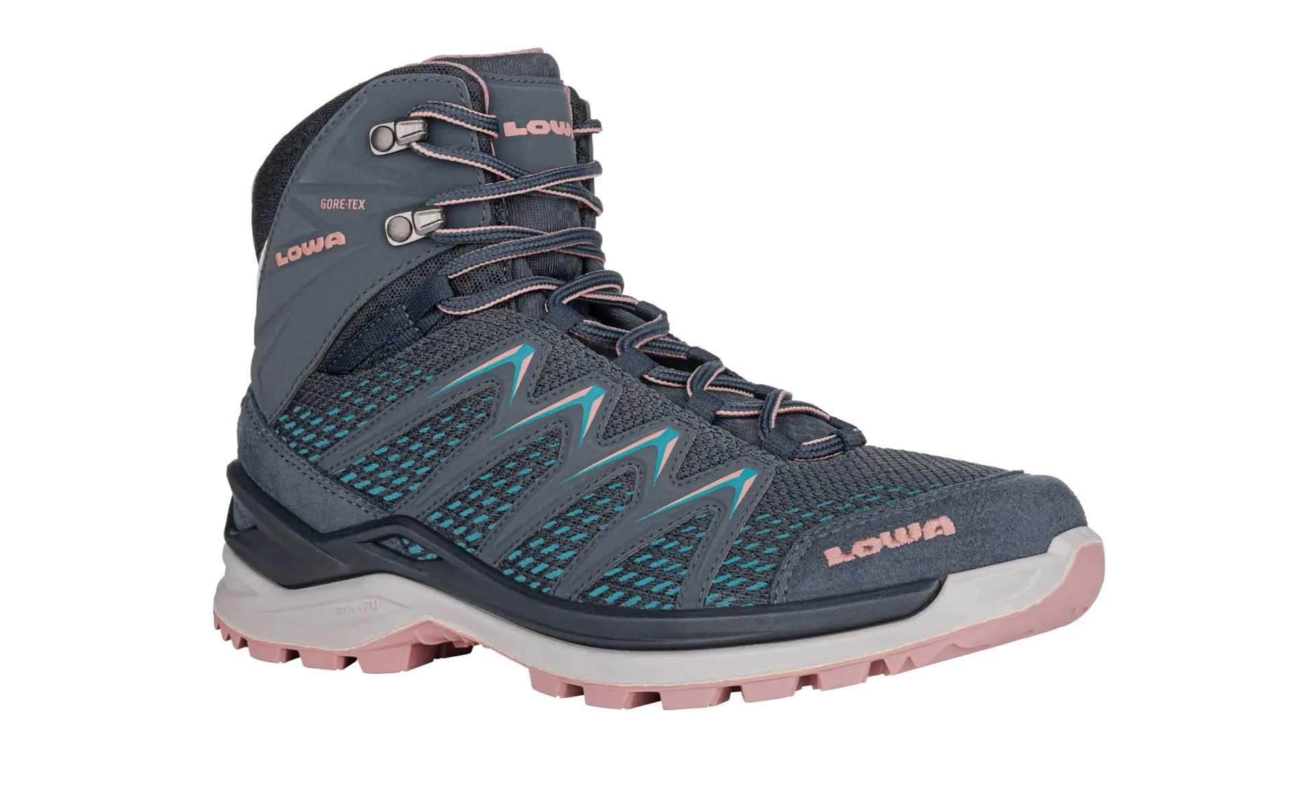 The Innox Pro GTX Mid Ws by LOWA is an innovative and lightweight midcut multifunctional shoe that is suitable for a wide range of sporty outdoor activities in any season. The GORE-TEX® lining makes the shoe largely waterproof and ensures a pleasant foot climate and dry feet even in snow and mud. The lacing system with the practical lacing hooks ensures easy on and off and a secure fit. The DynaPU® midsole provides optimal cushioning and the LOWA Monowrap® frame ensures sufficient stability even in rough terrain. This hiking boot is 100% vegan and leaves nothing to be desired.