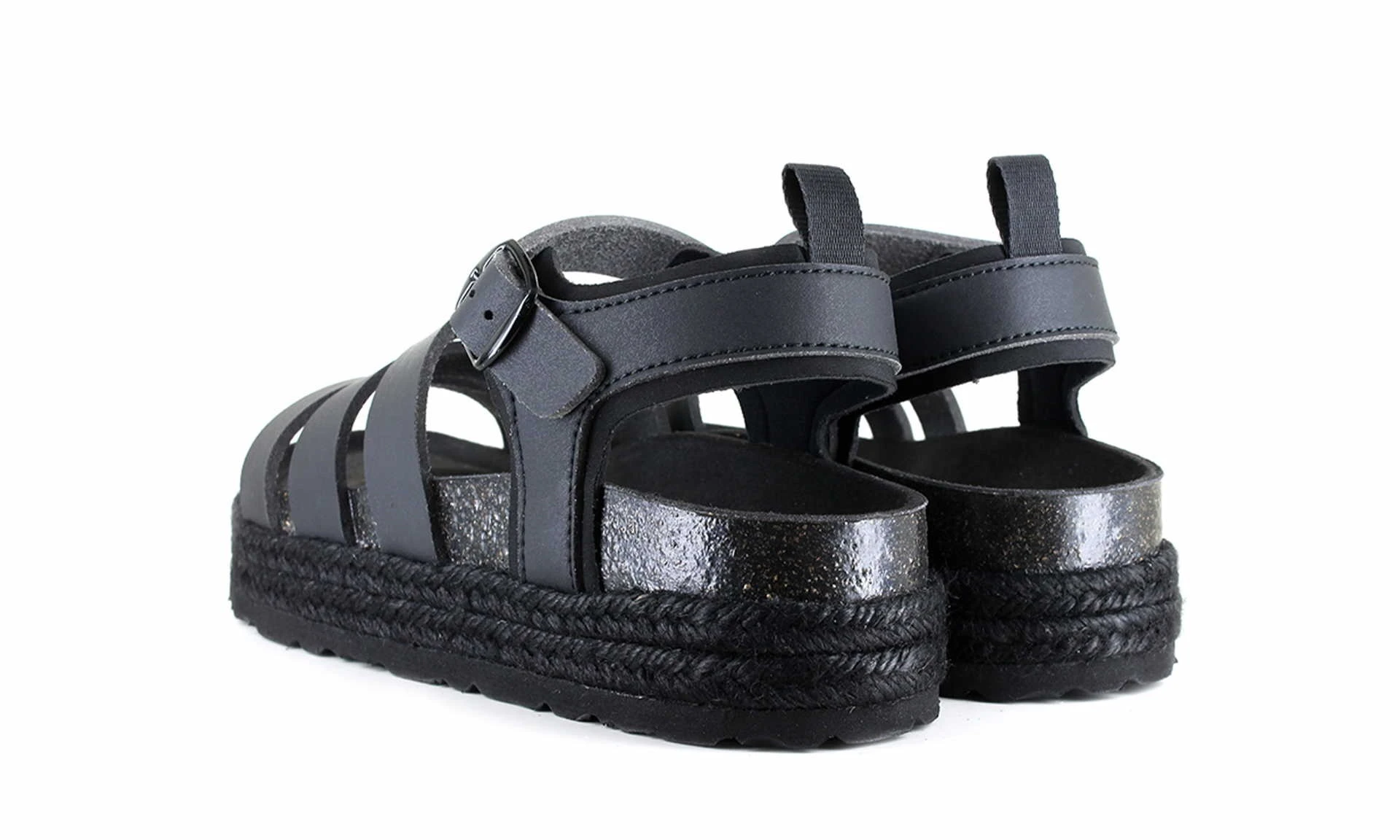 Lydia Sandal Black is a vegan Roman sandal that is especially comfortable thanks to its padded footbed. The robust upper material is made of vegan microfibre and is therefore easy to clean. The soles are adorned with a braided pattern made of jute, which makes this black sandal a real eye-catcher! The British brand Vegetarian Shoes has been producing vegan shoes of high quality and best comfort since 1990.