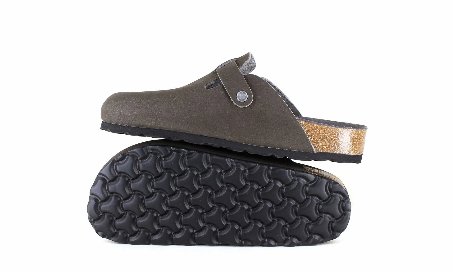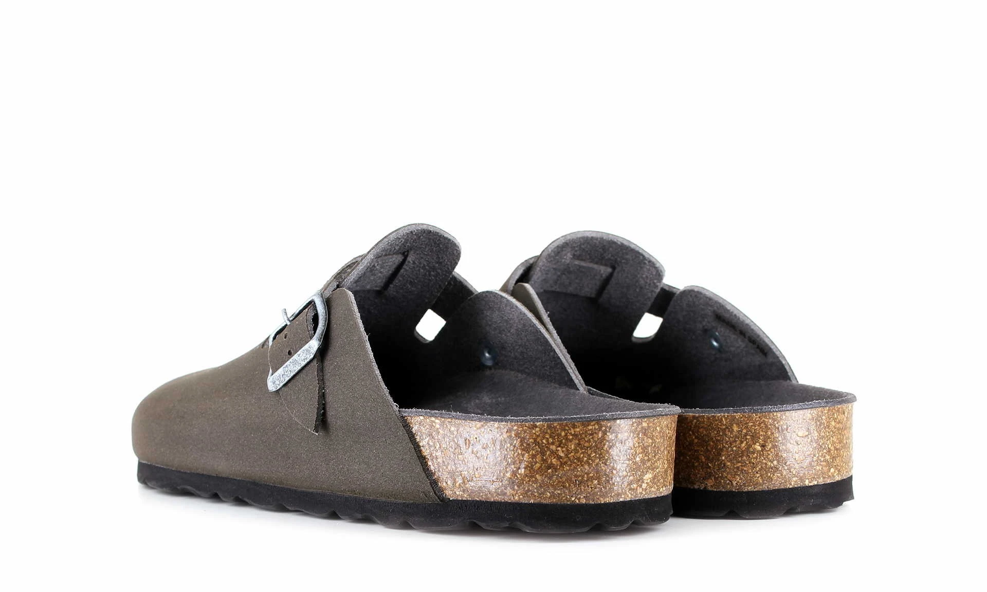 The Moab slipper from VEGETARIAN SHOES is a practical slipper that can be worn both at home and outside. It is made of breathable and supple synthetic leather. The footbed is made of dark suede-look microfiber, and the comfortable and grippy sole is made of cork and rubber. All in all, the Moab Slipper, in all its simplicity and functionality, is already a true classic.