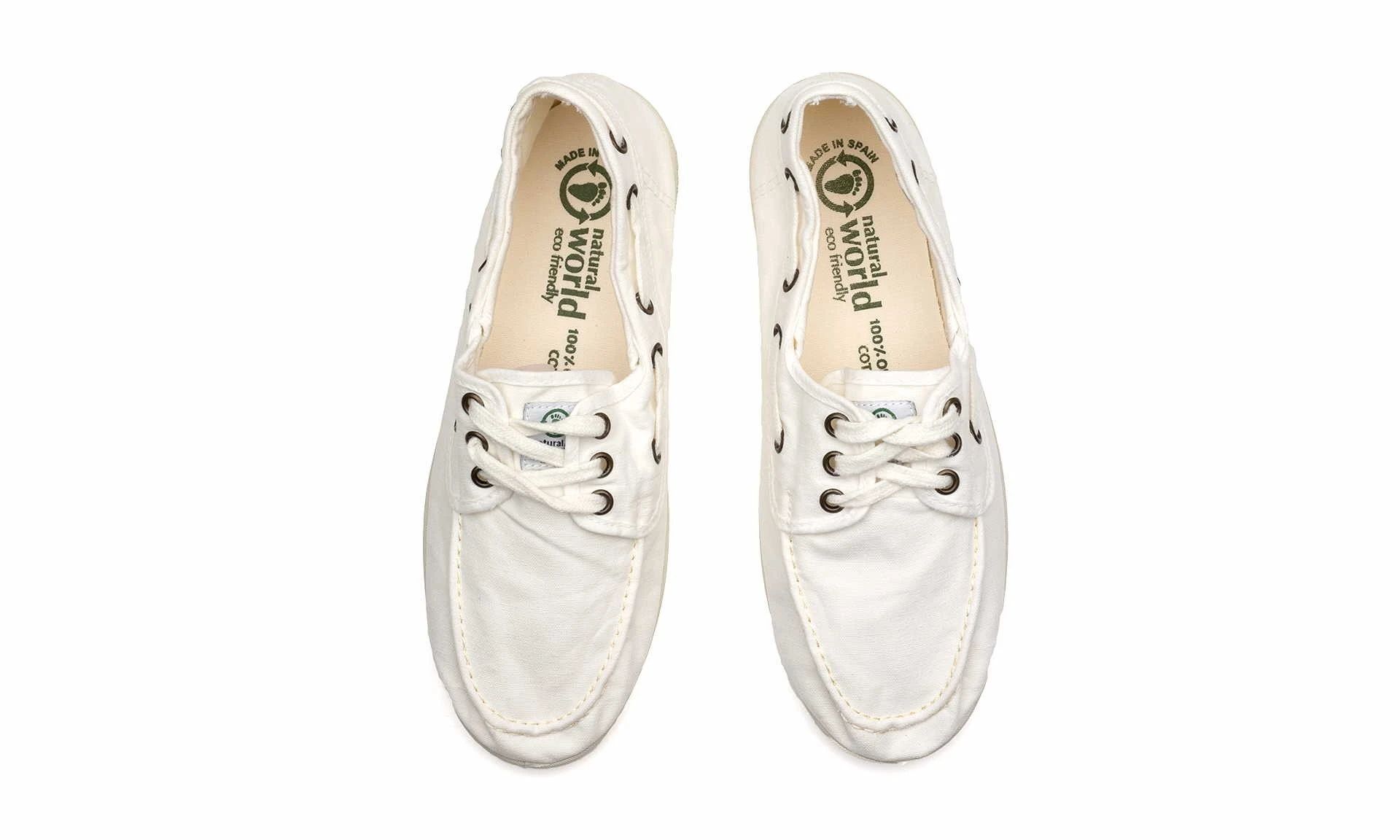 The Alheli White by NATURAL WORLD is a light-weight boat shoe with an organic cotton upper. The thin but durable outsole is made from natural rubber. The Nautico is a cozy, easy-going shoe with a casual and timeless look. A great ethical choice for summer!