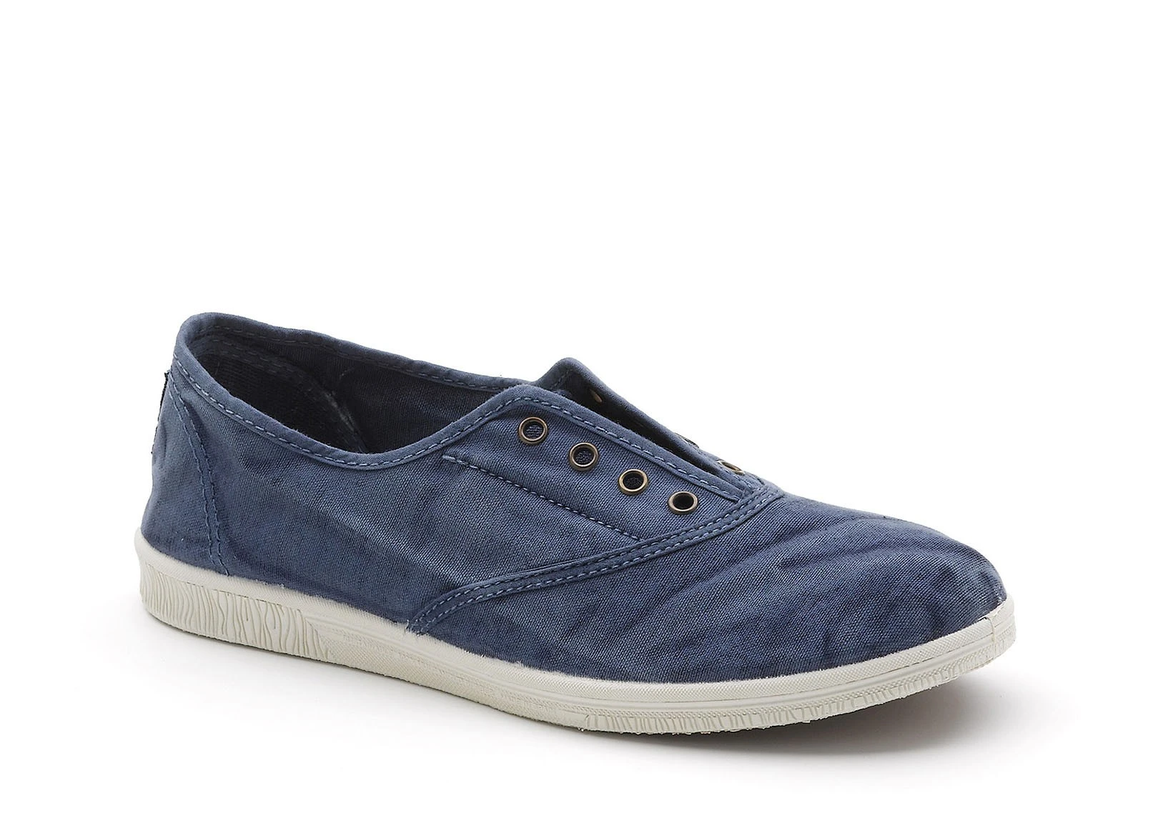 Ingles Enzimatico by NATURAL WORLD is a light-weight slip on sneaker with an organic cotton upper in a subtle tie-dye look. The thin but durable outsole is made from natural rubber. The Ingles is a cozy, easy-going shoe with a casual and timeless look. A great ethical and casual choice for summer!