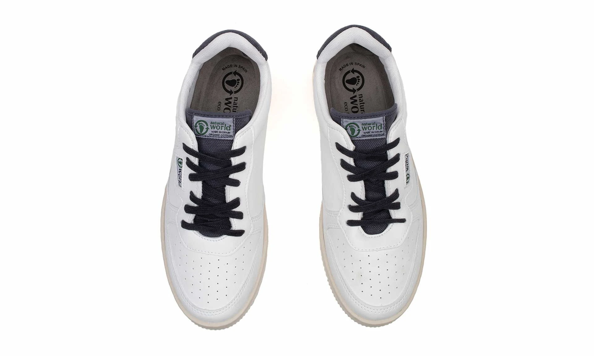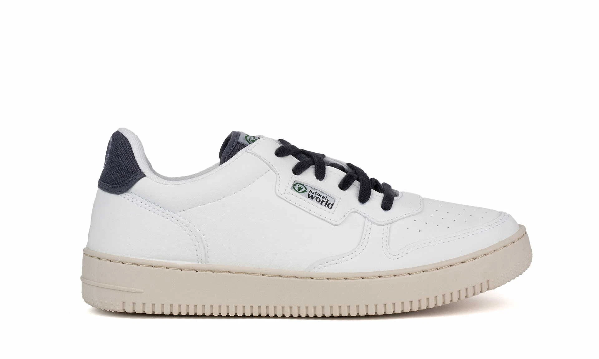 The Lowcut Sneaker White/ Navy Blue from Natural World is here! The upper material is made of an easy-care and robust vegan leather made of recycled polyester and organic cotton. The rubber soles of this vegan sneaker are stitched to the upper material – so this model was produced without adhesives, which is conducive to the shoe’s longevity and recyclability. If you value sustainability, fair production and animal friendliness, you’ve come to the right place!