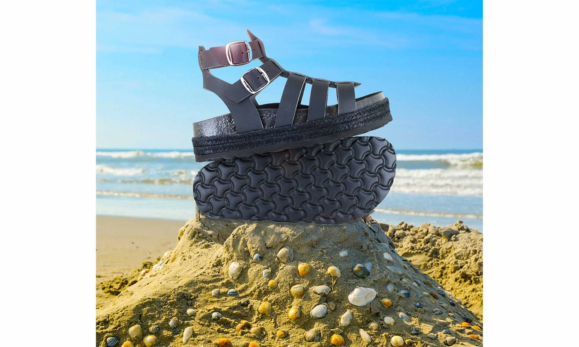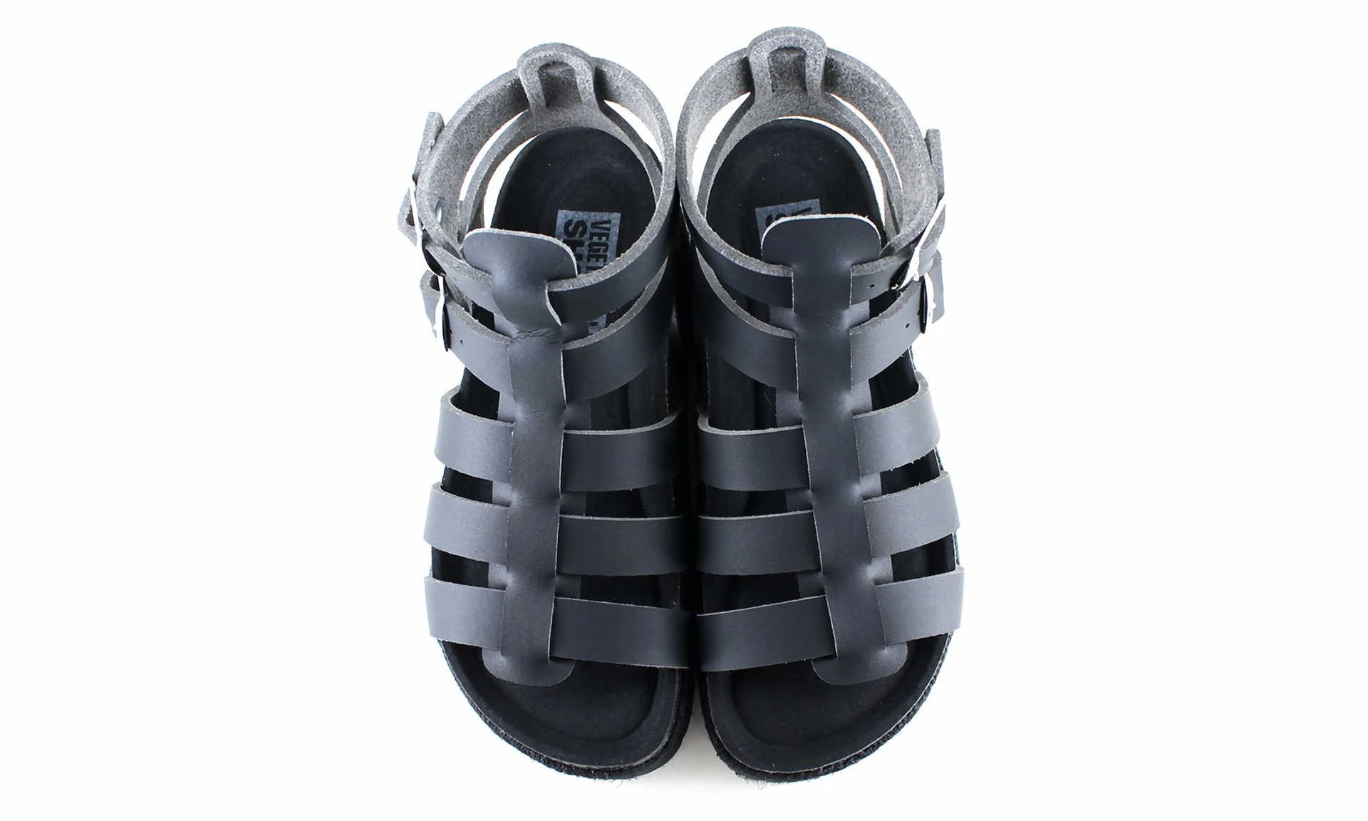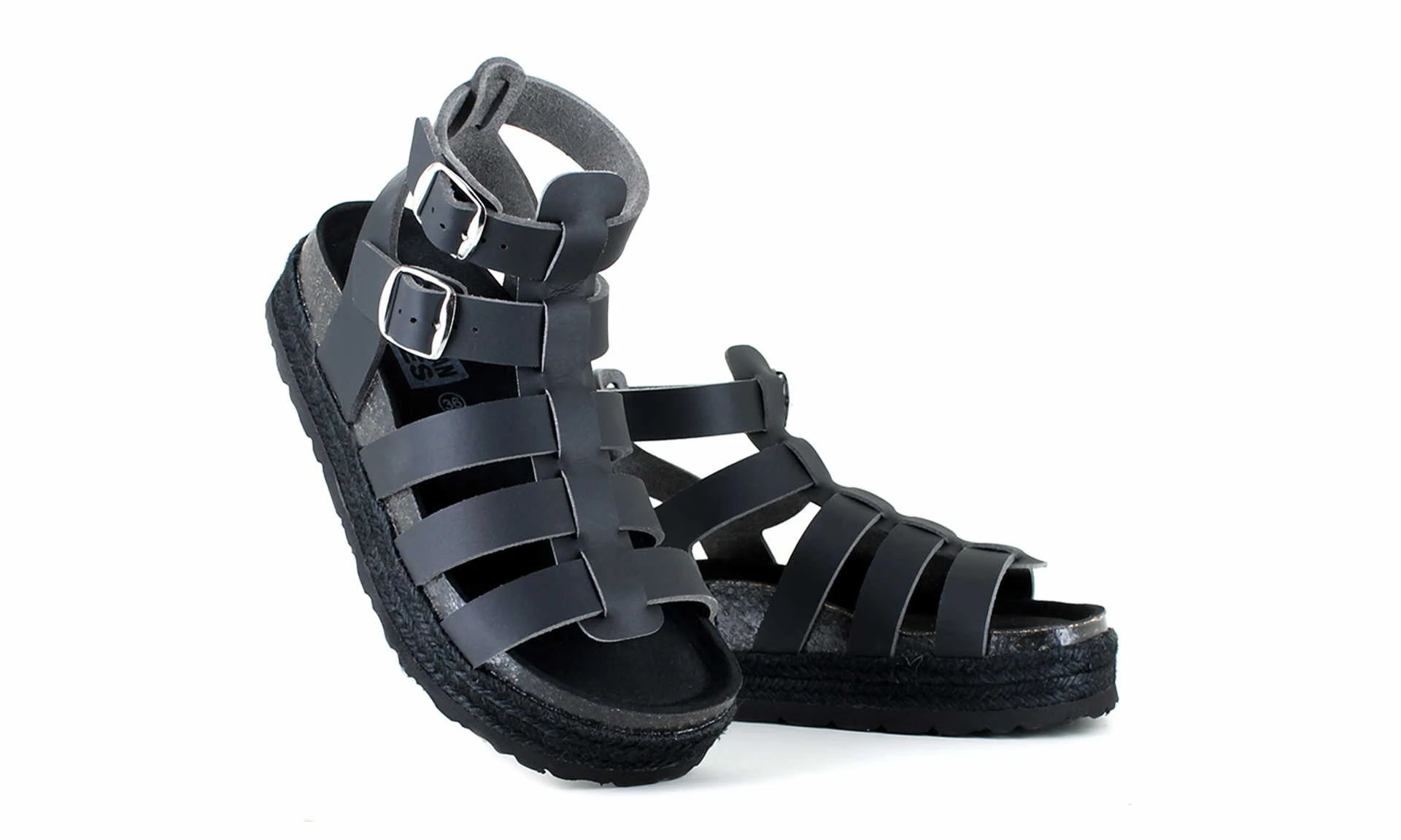 Lydia Sandal Black is a vegan Roman sandal that is especially comfortable thanks to its padded footbed. The robust upper material is made of vegan microfibre and is therefore easy to clean. The soles are adorned with a braided pattern made of jute, which makes this black sandal a real eye-catcher! The British brand Vegetarian Shoes has been producing vegan shoes of high quality and best comfort since 1990.