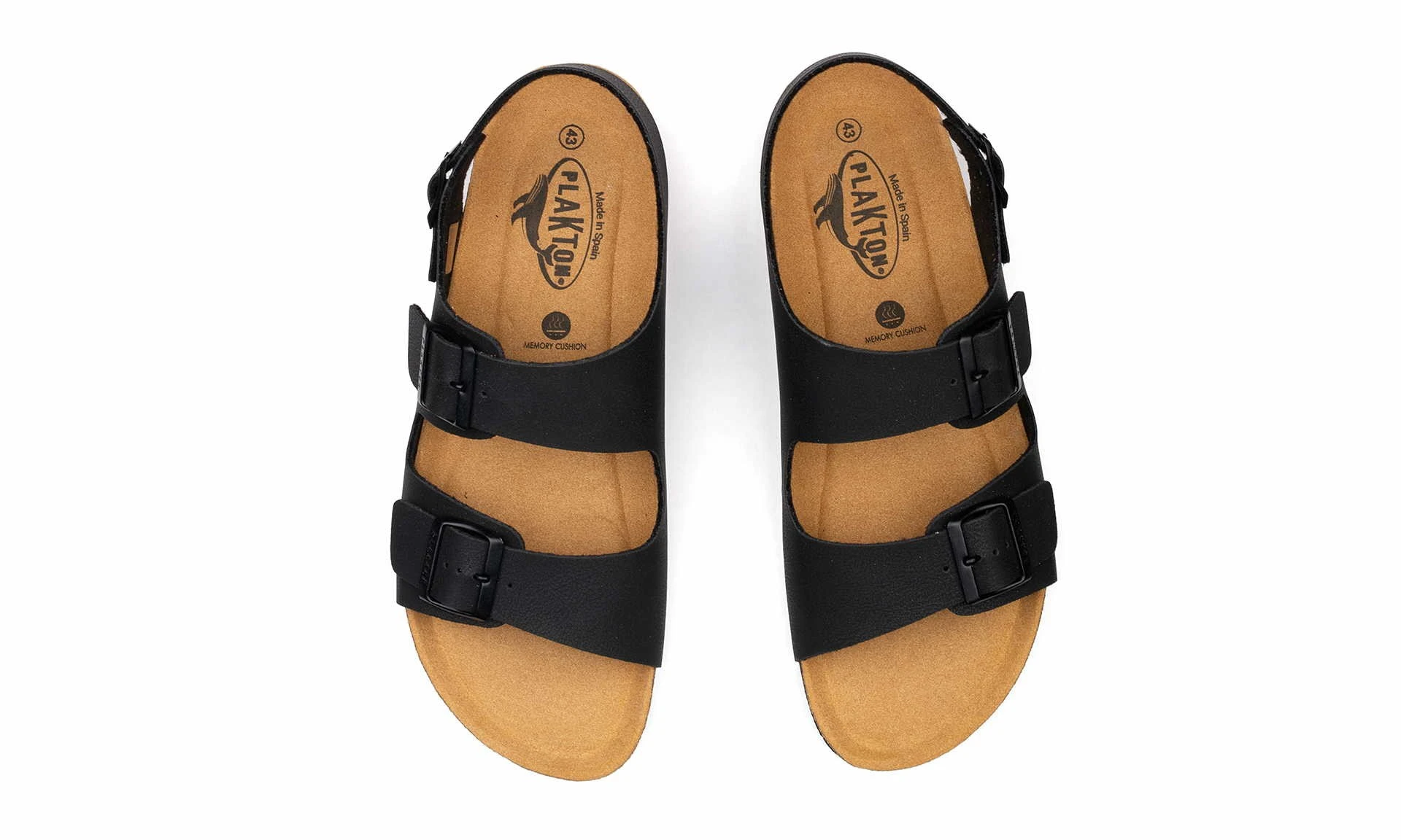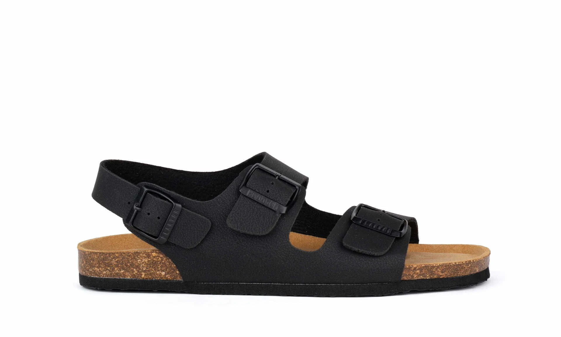 Baku Black by Plakton is a comfortable vegan men’s sandal that offers extra support thanks to the strap at the heel. The upper is made of breathable vegan PU leather and the soles are made of cork and EVA rubber. This timeless summer sandal will accompany you on many sunny days.