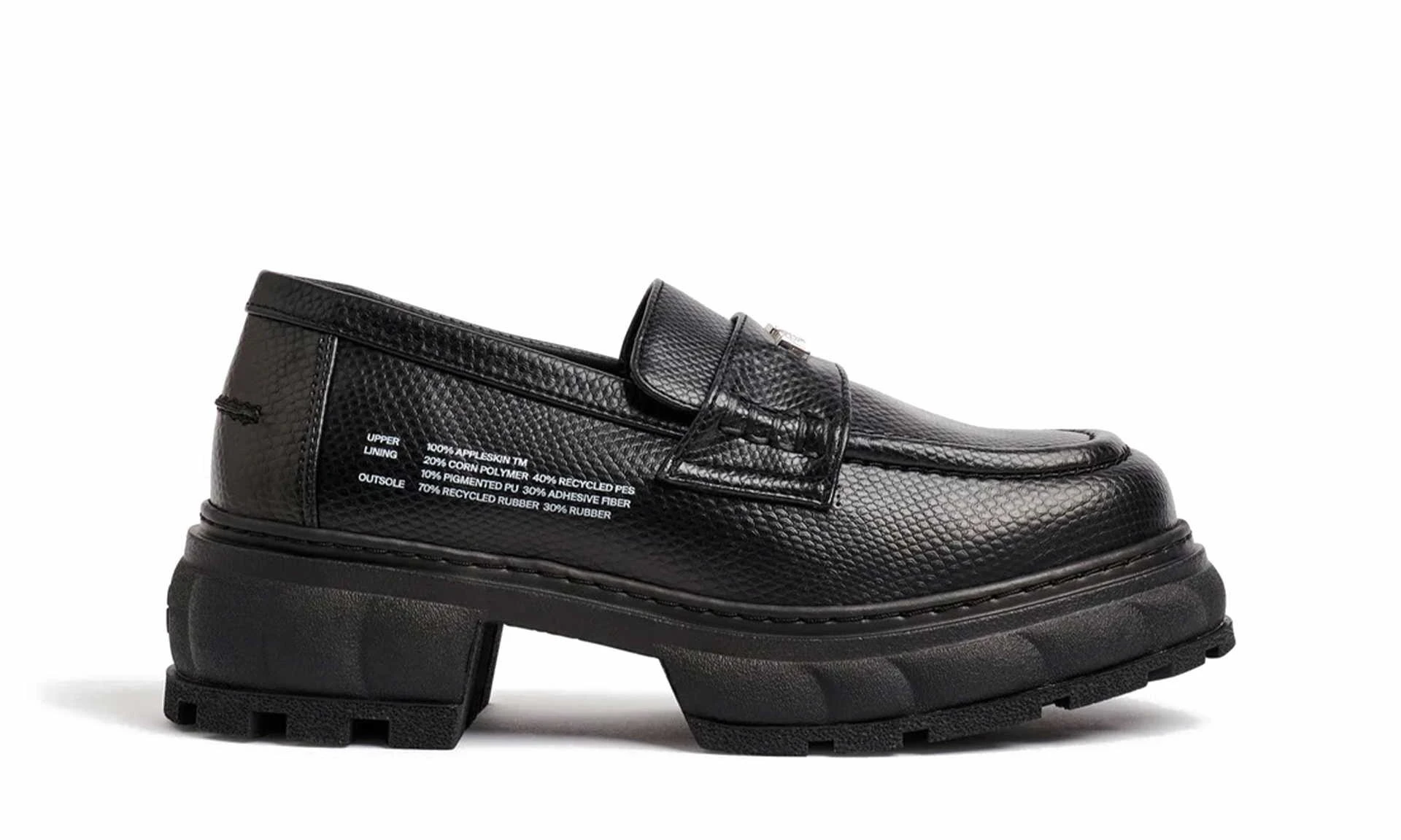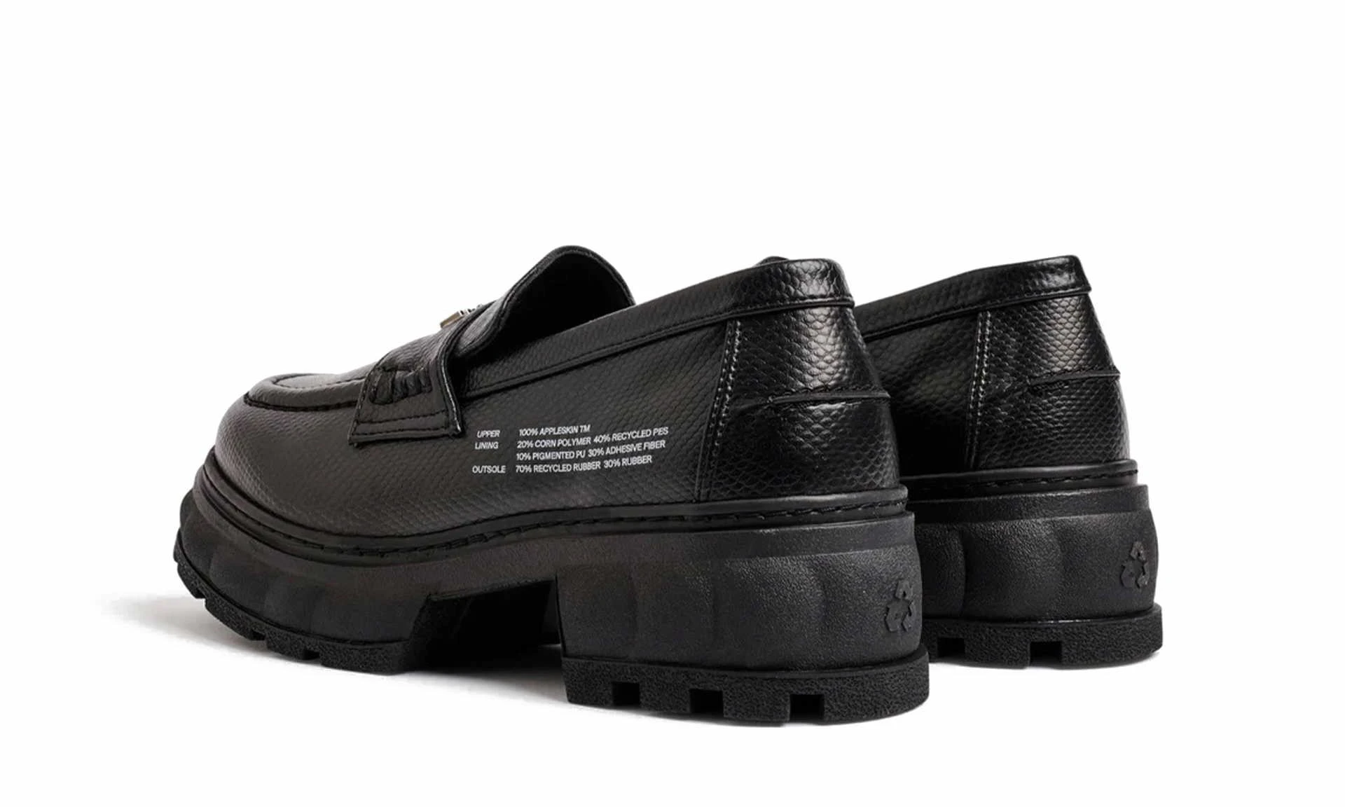 1969 Mamba by Viron are super-casual, super-fashionable vegan mules made from apple leather. The black sliders are made from a high percentage of recycled materials, making them a more sustainable alternative.