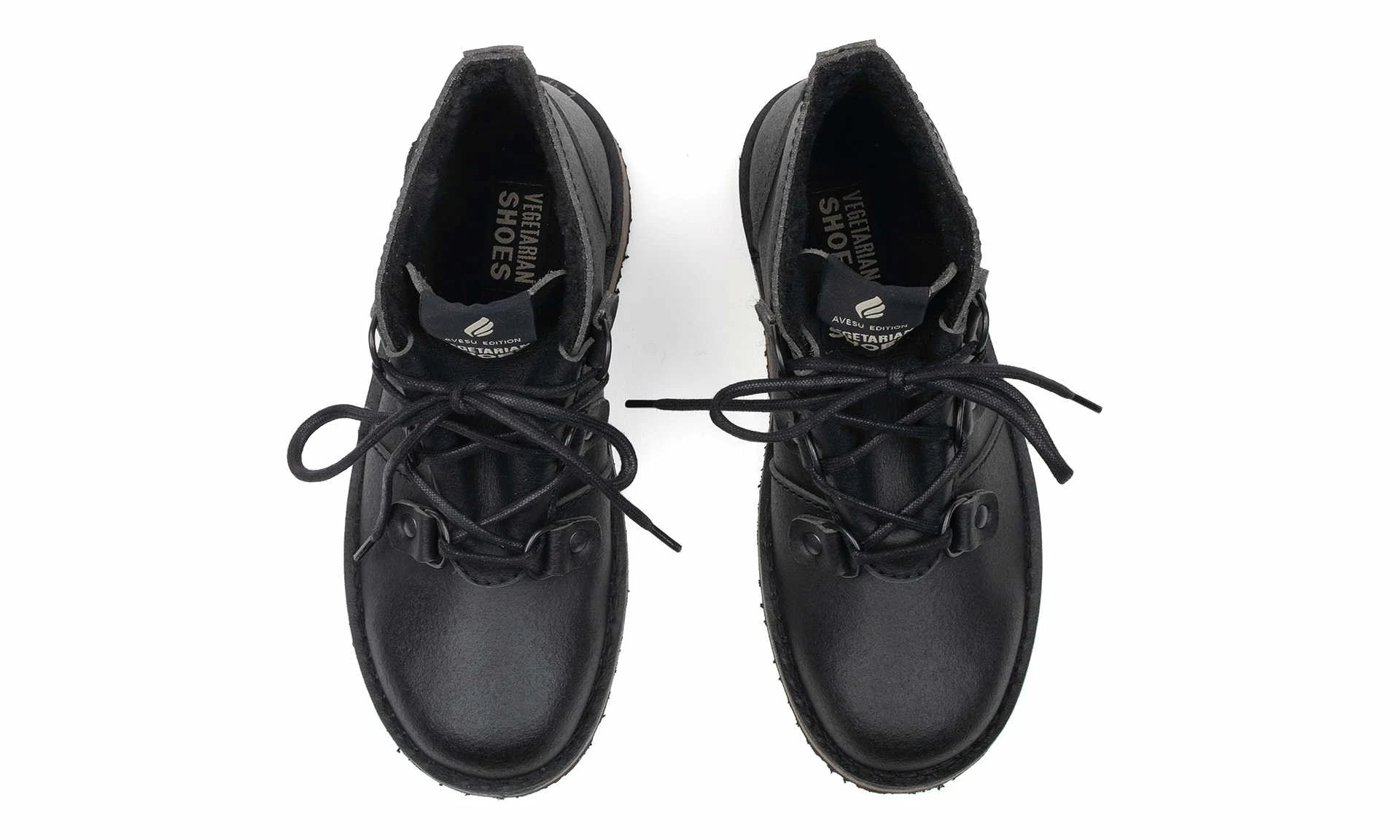 The Retread Boot MK4 is a new VEGETARIAN Shoes x avesu edition. The sturdy winter boot is 100% vegan – with an upper made of smooth faux vegetan leather (cotton and PU) and abrasion-resistant soles with non-slip tread made of rubber and thermoplastic. The Retread Boot is warmly lined and the vegan leather is durable, ages beautifully and is easy to care for. The D-ring lacing makes the boot comfortable and quick to lace up, and the sewn-in sole keeps your feet protected from moisture.