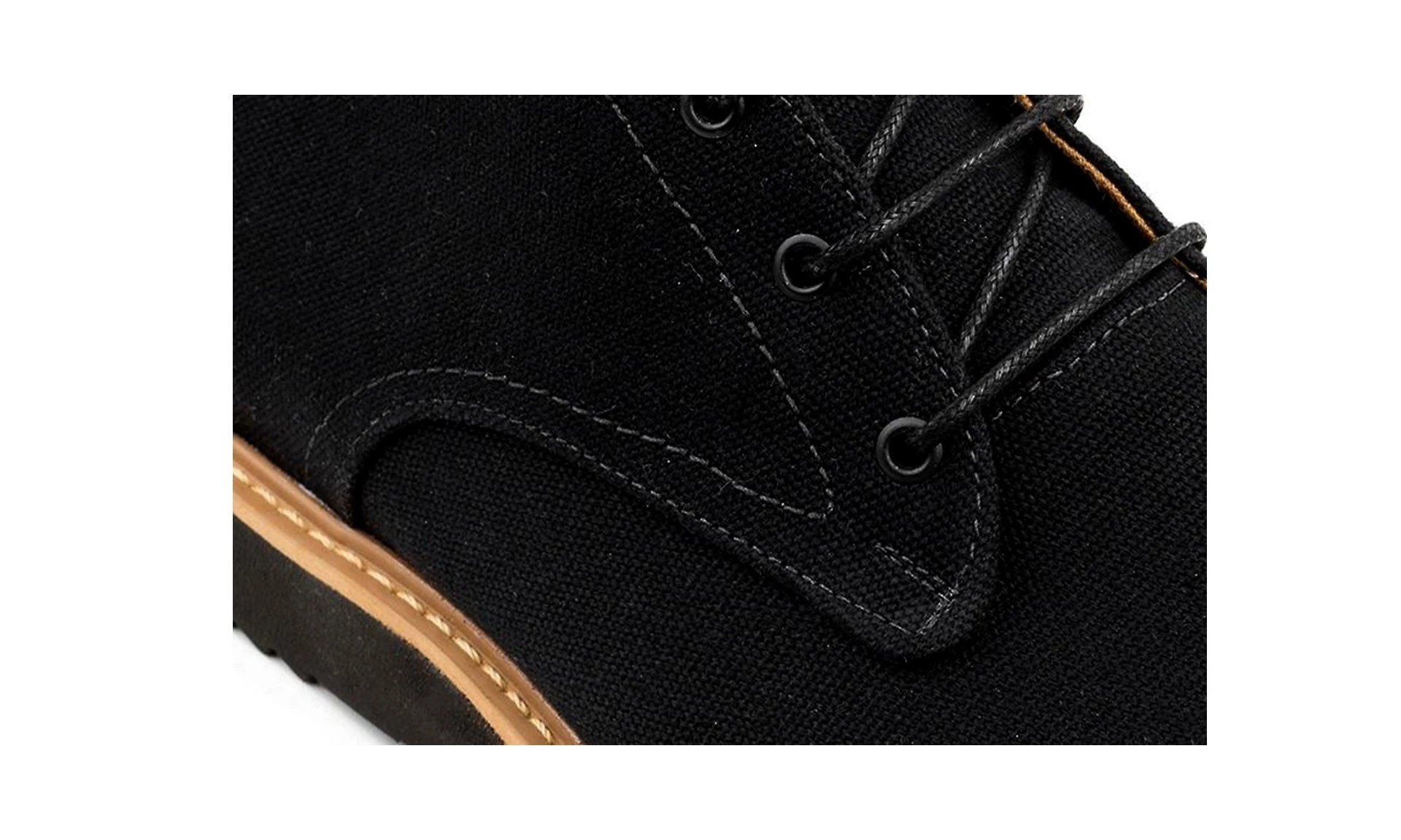 Thomas by AHIMSA is a fashionable, mid-cut Chukka Boot with a slim cut. Its upper is made from a durable organic cotton canvas with a much softer organic cotton lining that has been reinforced with a faux suede patch in the heel area for maximum comfort and to protect against abrasion. The flexible, soft outsole is made from lightweight EVA and provides, along with the removable natural latex and cork insole, a great wearing comfort. This makes Thomas a great fit for everyday activities as well as for business occasions.