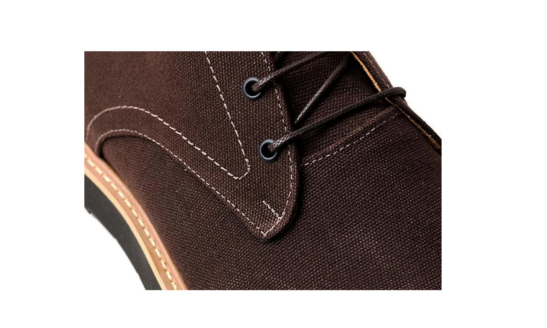 Thomas by AHIMSA is a fashionable, mid-cut Chukka Boot with a slim cut. Its upper is made from a durable organic cotton fabric with a much softer organic cotton lining that has been reinforced with a faux suede patch in the heel area for maximum comfort and to protect against abrasion. This makes Thomas a great fit for everyday activities as well as for business occasions.