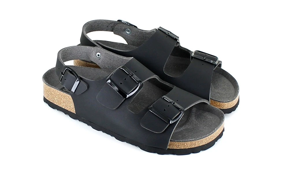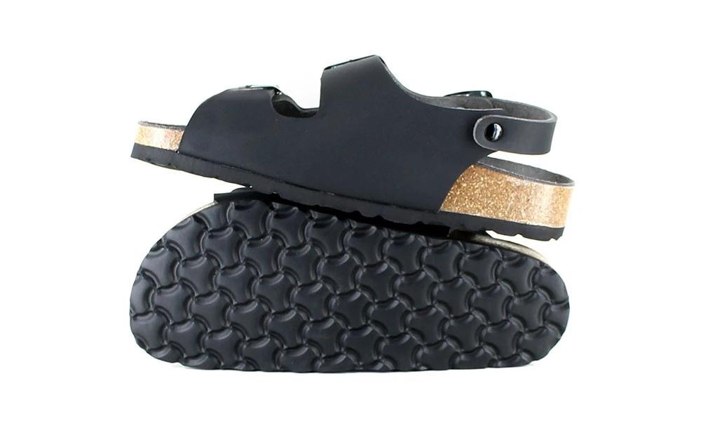 The Three Strap Sandal by VEGETARIAN SHOES is a very comfortable sandal that convinces with breathable as well as supple synthetic leather and with a grippy sole made of cork and rubber. Thanks to the strap at the heel, your foot has enough support at all times and can also unfold naturally due to the anatomical footbed.