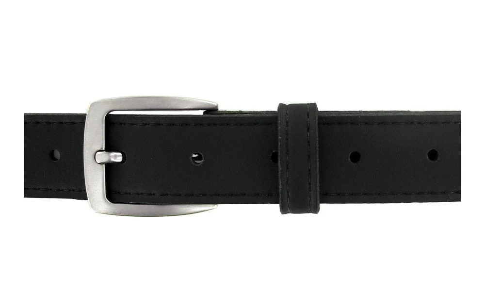 The Town Belt from VEGETARIAN SHOES is made from black synthetic leather. The buckle contains nickel. The belt is approx. 2.8 cm wide and around 3 mm thick.