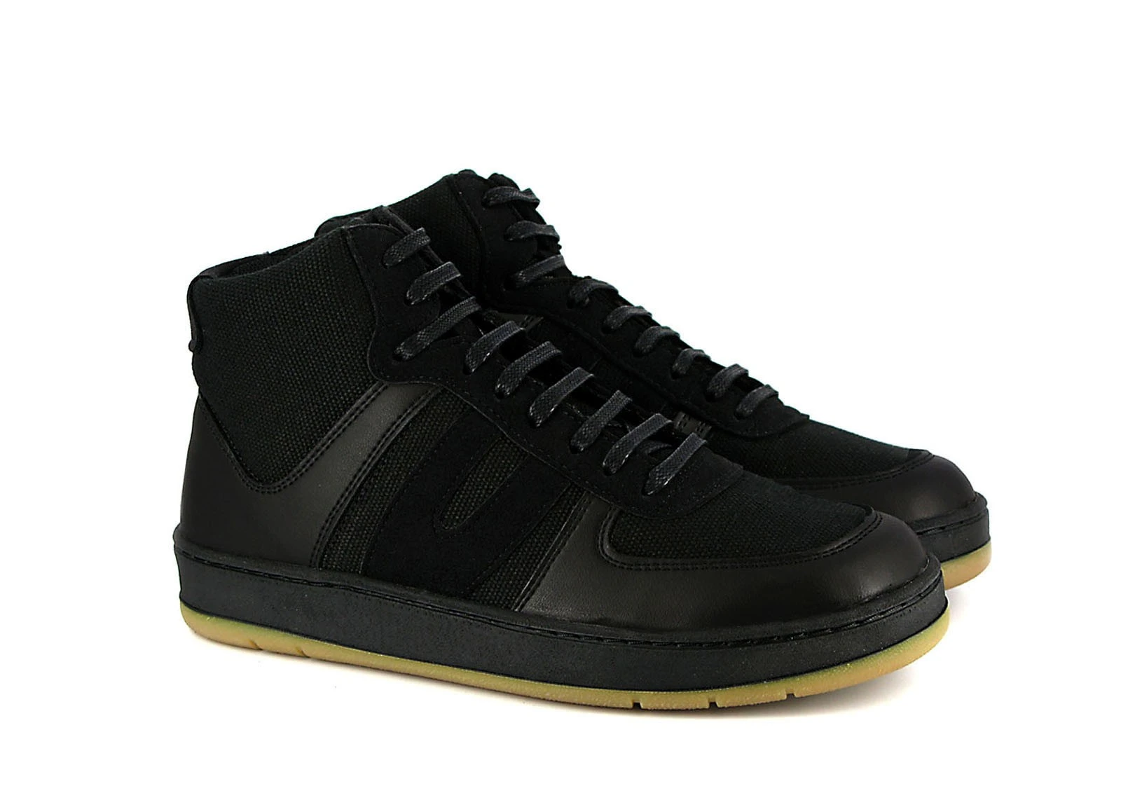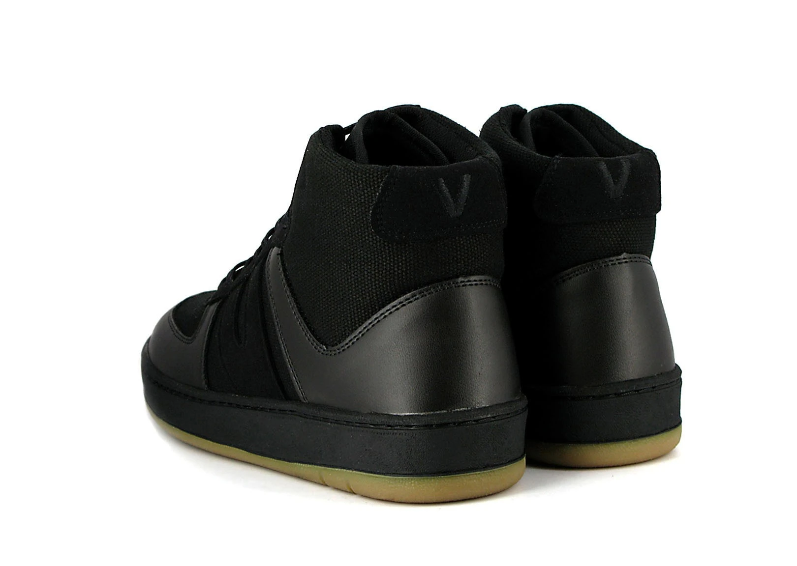 The Veg Supreme Hemp Hi Top by VEGETARIAN SHOES is made from high-grade, breathable hemp canvas. For the toe and heel panels, black synthetic leather (Vegetan Uppers) is used, which is breathable as well as being 80% biodegradable. The shoe also features synthetic suede lace-facing and a two tone natural rubber skate sole, which is stuck and stitched to the upper material. With a padded tongue and collar and a thick, padded sole, the Veg Supreme offers excellent comfort. The retro design, which resembles classic high-top sneakers from the 1980s, simply gives the Veg Supreme Hi Top a great look.