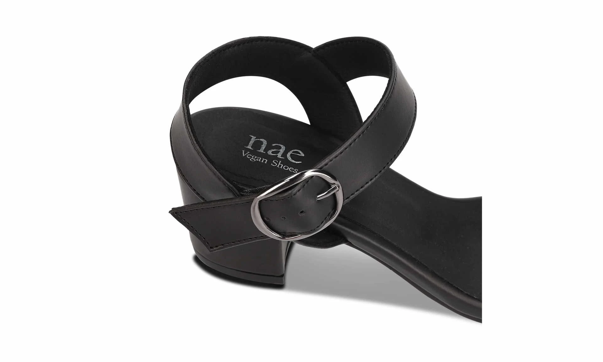 Zinnia Black by nae is a simple vegan sandal with an ankle strap and heel. A classic model in a more sustainable guise, because the sandal is made of apple leather. This bio-based leather alternative uses leftovers from the apple juice industry in Italy! The model will certainly not go out of fashion.